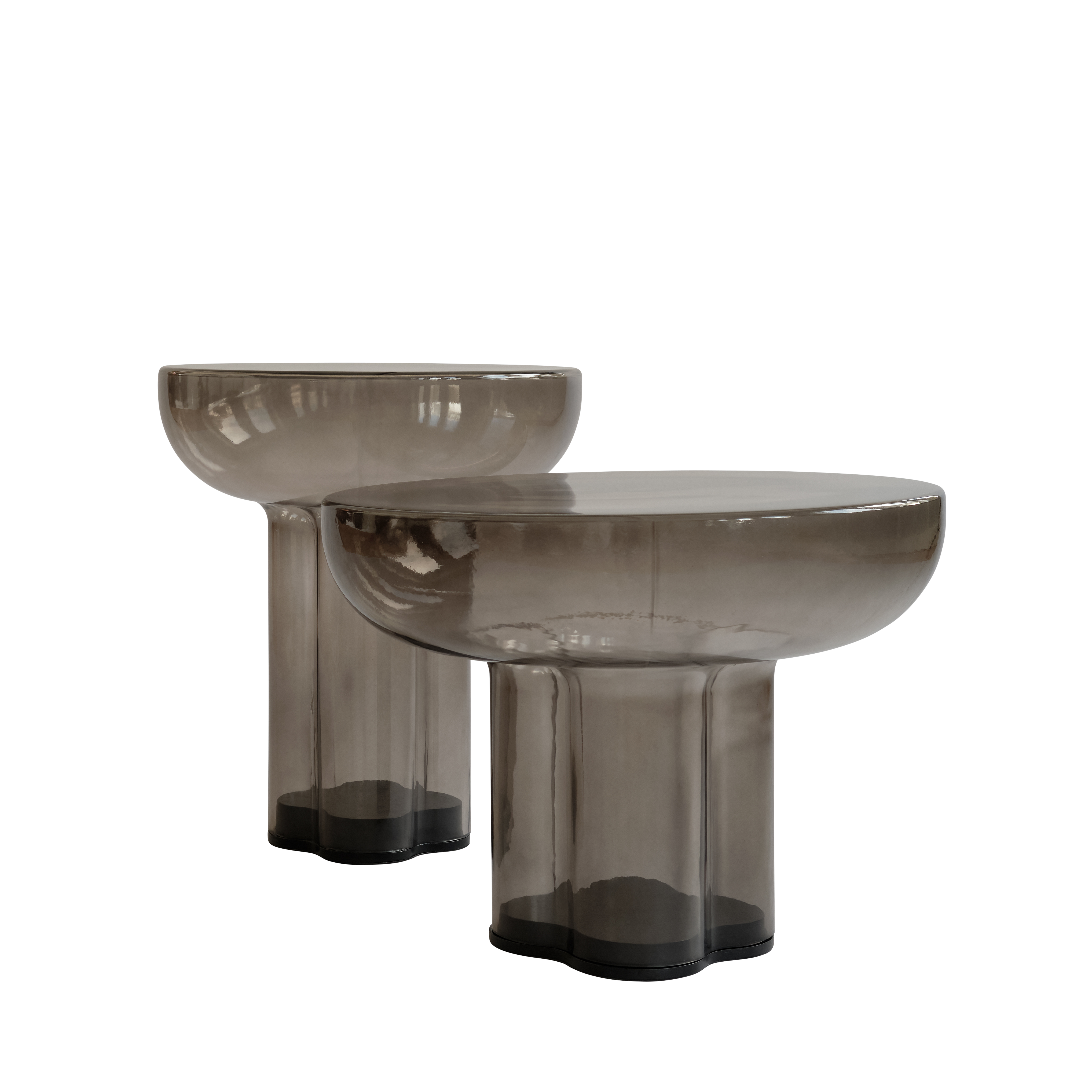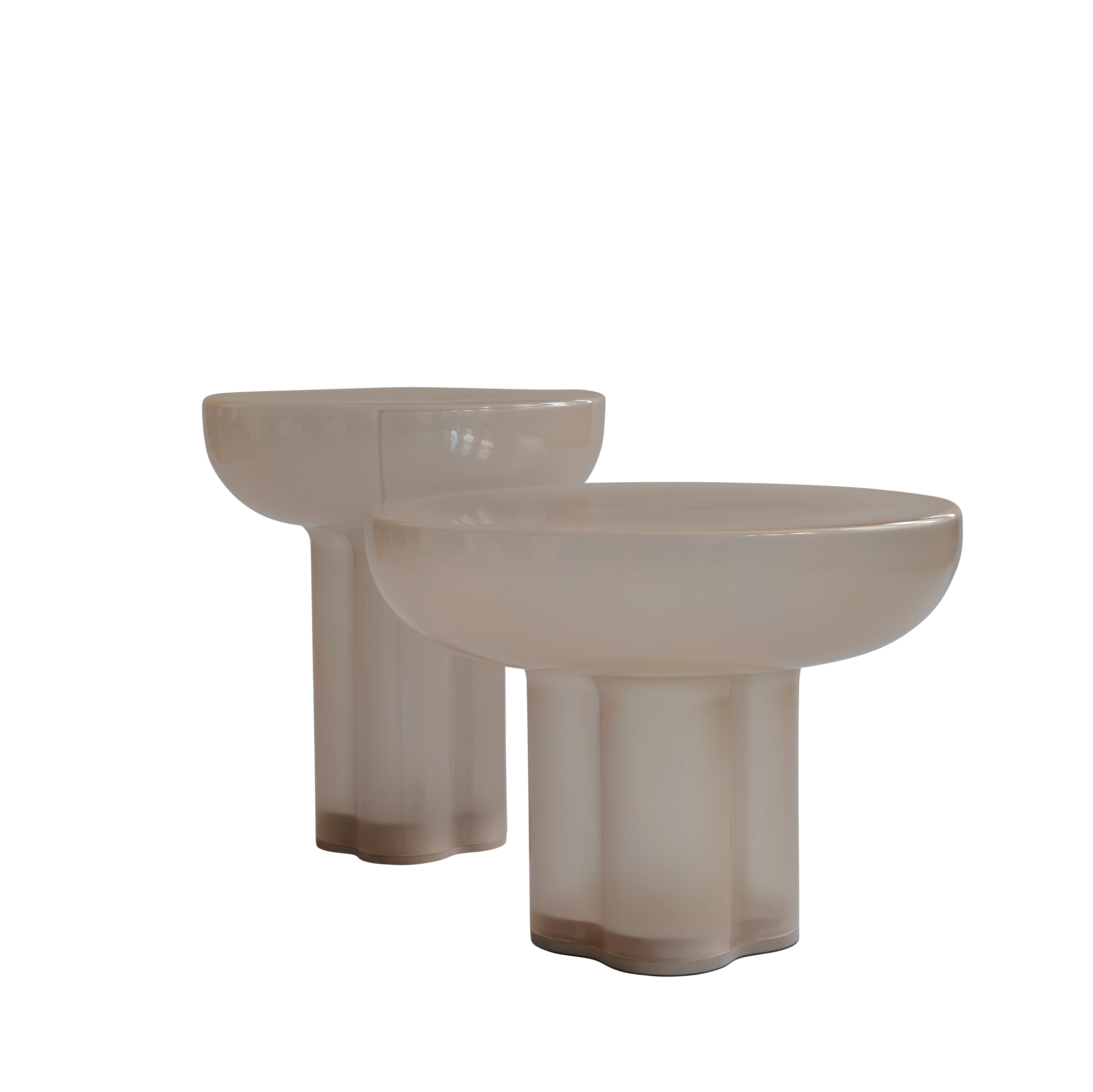 Erhältlich in zwei Größen – Niedrig (41 cm Höhe) und Hoch (50 cm Höhe) – sowie in fünf edlen Oberflächen (Smoked Desert, Smoked Forest, Bone White, Coffee und Burned Black), bietet der Tisch vielfältige Gestaltungsmöglichkeiten für Wohn- und Loungebereiche.