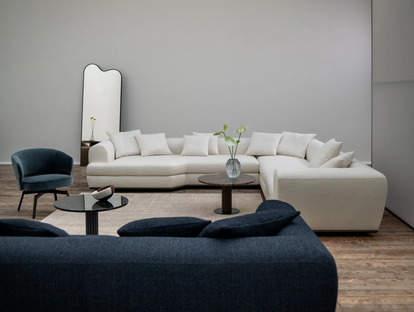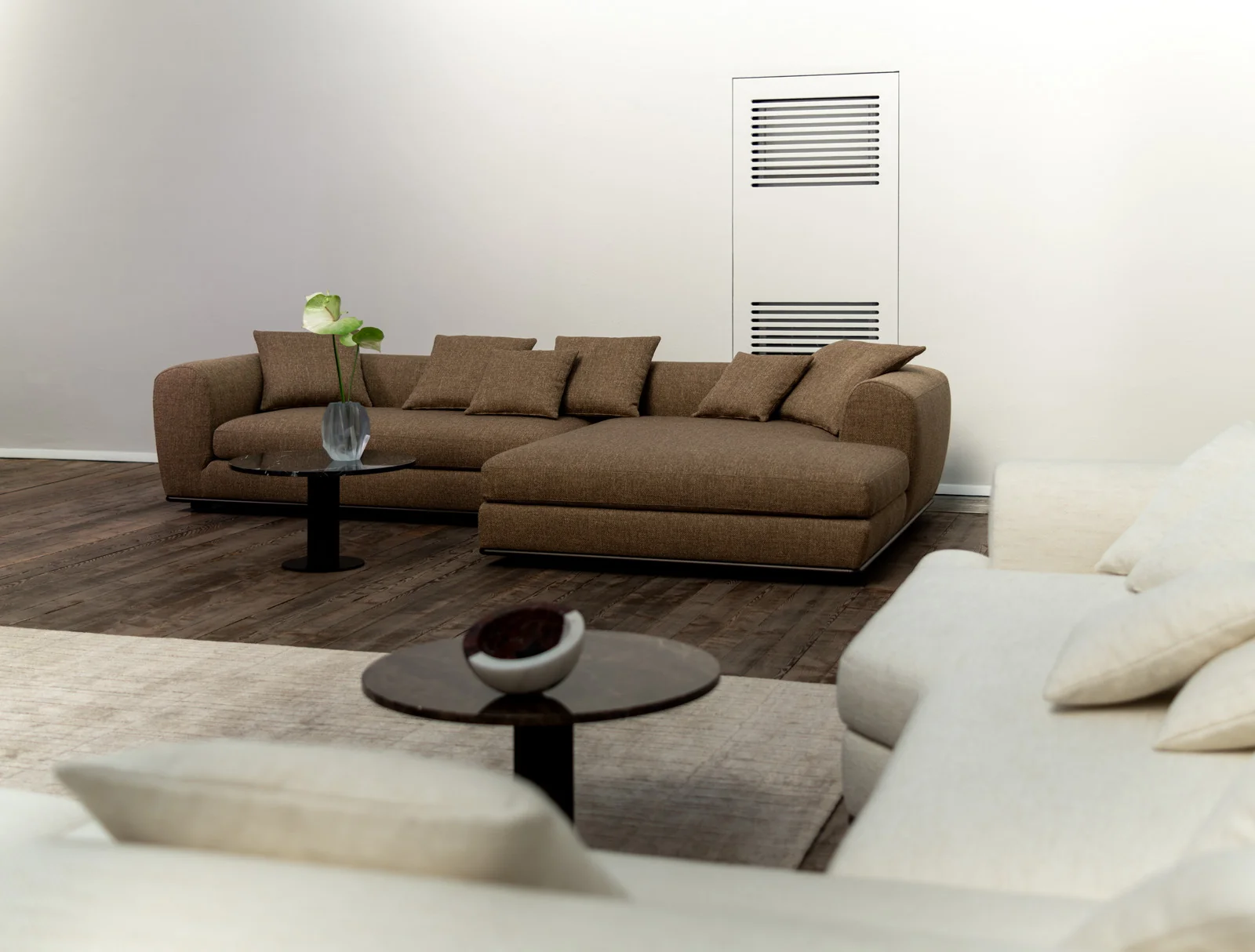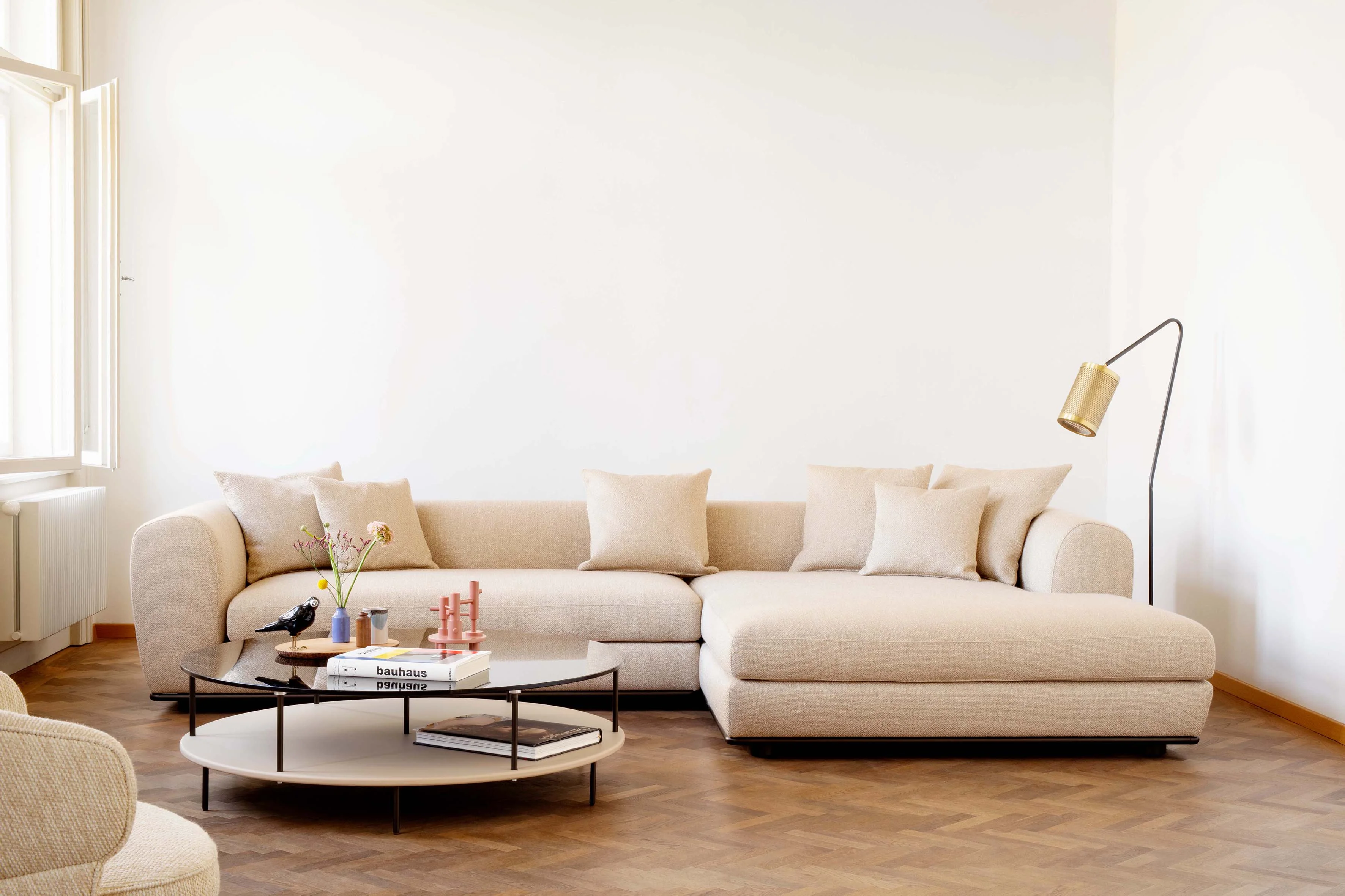 Wittmann BELETAGE • Modular • Eckmodule Mit BELETAGE präsentiert Wittmann die perfekte Balance aus Eleganz und Komfort. Die Sofaserie von Designer Sebastian Herkner begeistert durch harmonische Proportionen, feine Details und ein Design, das höchsten Ansprüchen gerecht wird. Großzügige Formen und eine beeindruckende Vielseitigkeit ermöglichen unzählige Kombinationen – mal weich geschwungen, mal klar geometrisch. Ein filigraner Metallrahmen, der die voluminösen Polsterelemente scheinbar schwerelos trägt, verleiht BELETAGE eine unverwechselbare Silhouette. So wird jedes Arrangement zum stilvollen Statement – zeitlos, individuell und mit beeindruckender Präsenz im Raum. Design: Sebastian Herkner (2025).Produktbeschreibung: Gestell: HolzkonstruktionUntergestell, Füße: Metall Bronze mit Filzgleitern (Aufpreis: Glanzchrom)Bezug Korpus/Sitz: FixbezugBezug Sitzkissen: Bezug abnehmbarPolsterung Korpus und Sitzkissen: Polymousse Sandwichaufbau mit VliesabdeckungPolsterung Sitz: Taschenfederkern, Polymousse Sandwichaufbau mit VliesabdeckungSonderanfertigungen auf AnfrageSitzbreite: 120 cmSitztiefe: 79 cmHinweis: Falten sind design-, verarbeitungs- bzw. materialbedingt und stellen keinen Reklamationsgrund dar. Farbabweichung bei Stoffen, Ledern, Holz und Stein (insbesondere Naturstein/ Marmor) sowie Glas gegenüber der Wittmann Musterkollektion - insbesondere bei Nachlieferungen - berechtigen nicht zur Reklamation. Echtes Leder ist ein reines Naturprodukt. Die Haut der Tiere kann bestimmte Merkmale wie verheilte Heckenrisse, Insektenstiche und ähnliches aufweisen. Diese Merkmale, so wie Farbabweichungen sind keine Qualitätsminderungen, sondern vielmehr Zeichen für die Naturbelassenheit der Häute. Im Gebrauch „lebt“ Leder weiter, so dass sich Falten bilden und sich die Oberflächenstruktur verändert. Diese Veränderungen sind beabsichtigt und stellen daher in keinem Fall ein Reklamationsgrund dar. Bitte beachten Sie, dass die angezeigten Bilder Illustrationszwecken dienen und von dem tatsächlichen Endprodukt abweichen können.