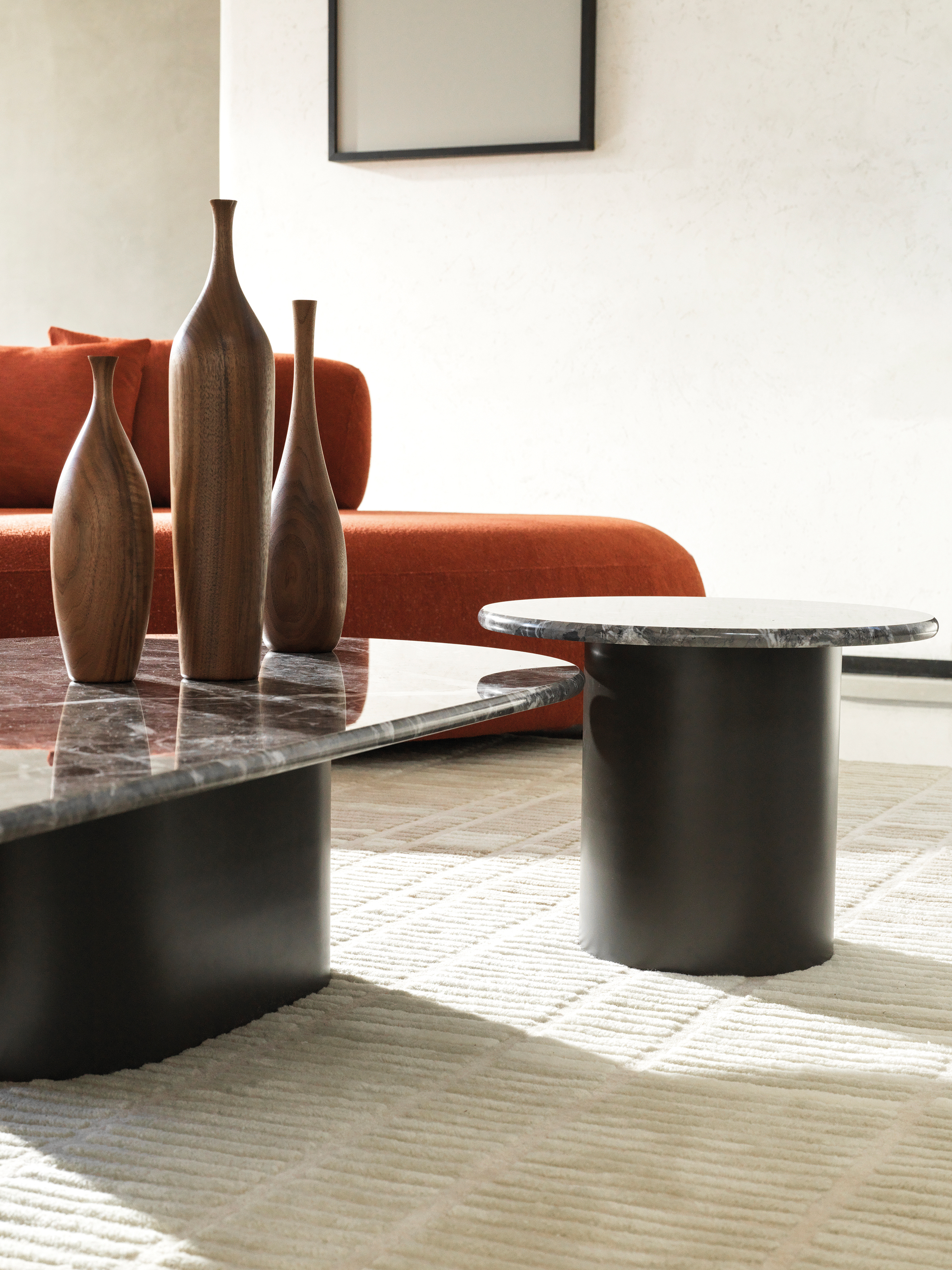 Die Arcade-Familie wächst weiter und wird durch formschöne Beistelltische ergänzt, die das Spiel von Säulen und Durchgängen mit ästhetischem Feingefühl und harmonischer Balance interpretieren. Die Tische, in unterschiedlichen Höhen und Proportionen erhältlich, sind in verschiedenen Ausführungen verfügbar.