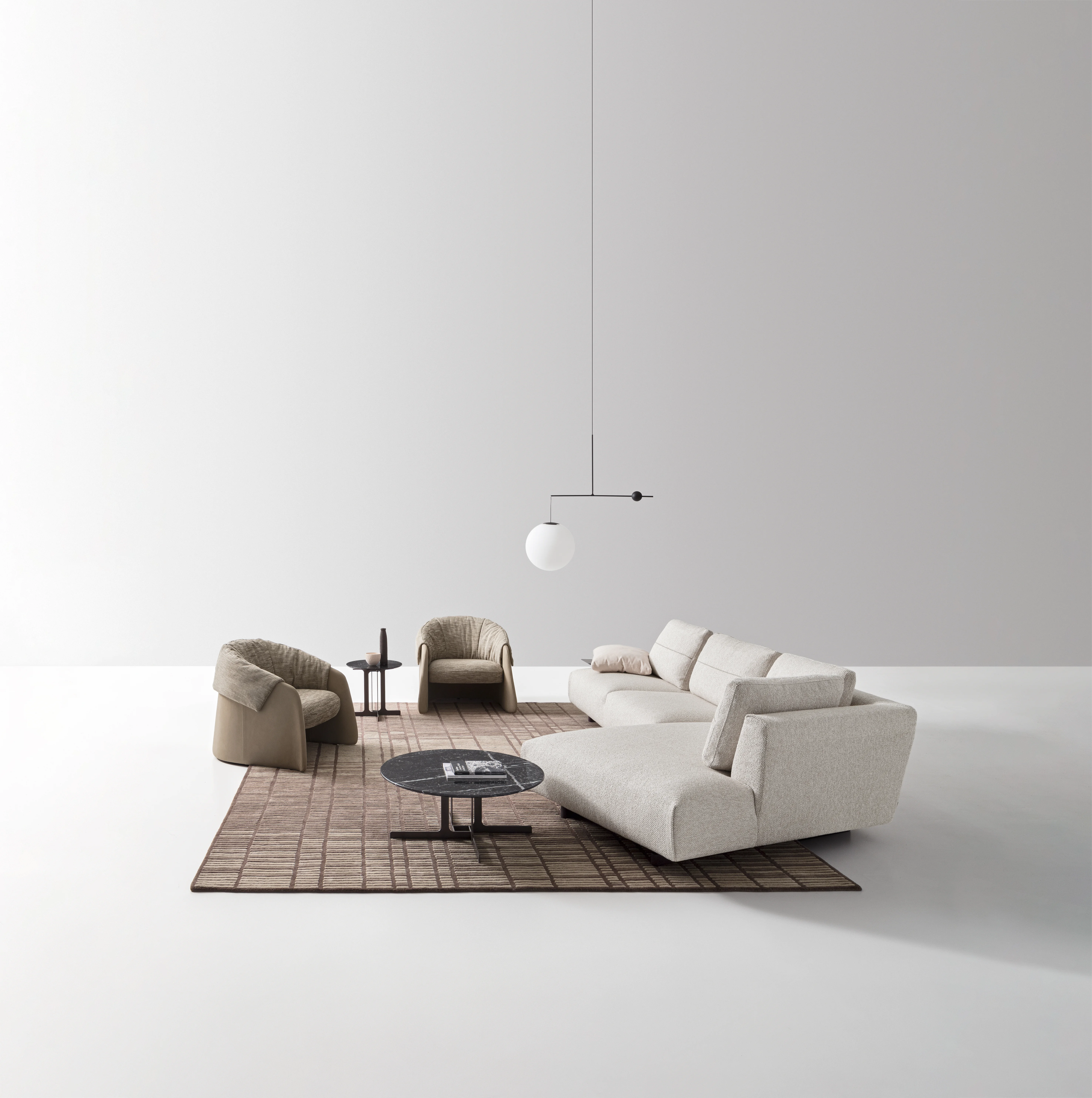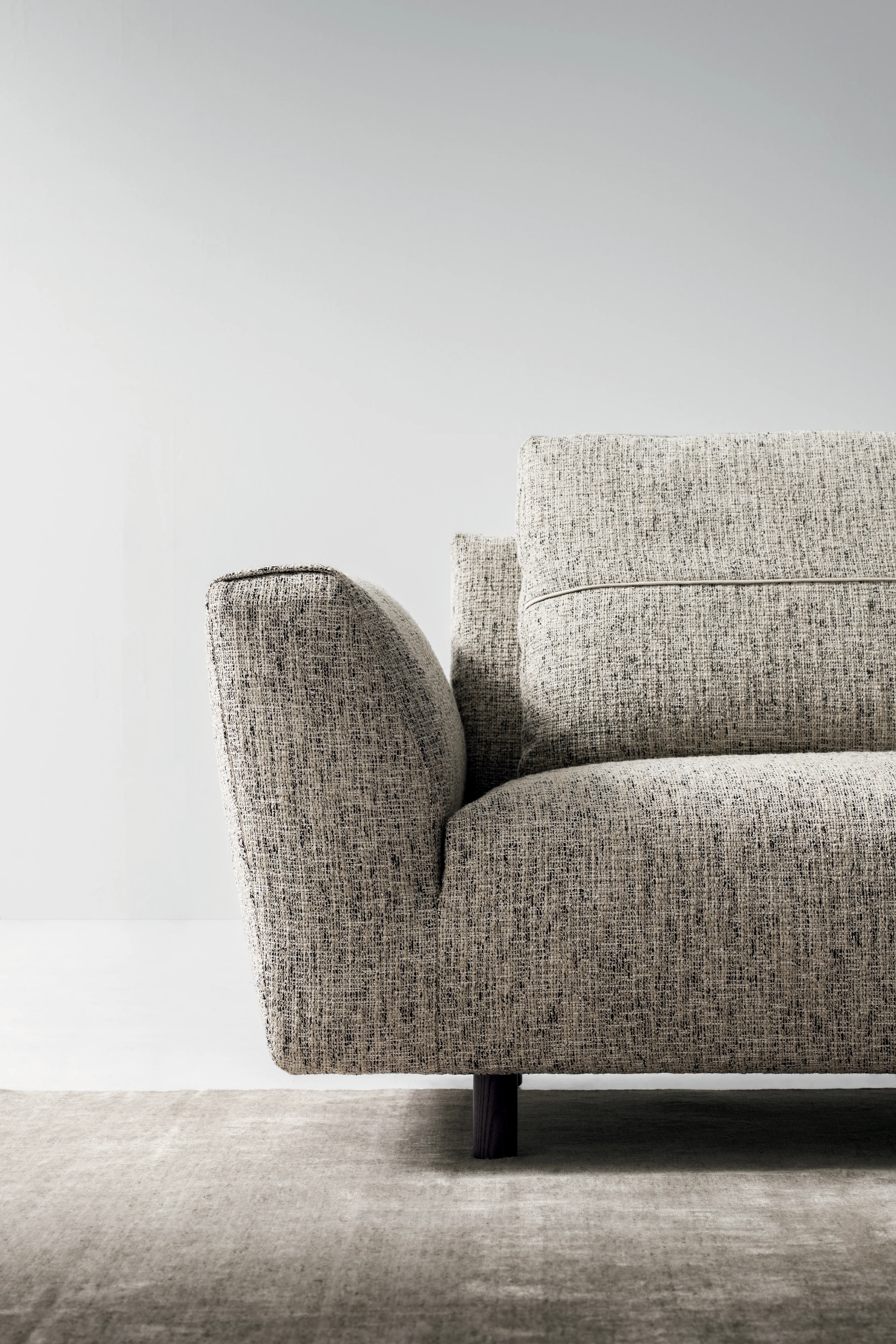 DITRE ITALIA ALTA SesselAlta von Ditre – Design in seiner schönsten Form Für Patrick Norguet ist ein Sofa weit mehr als nur eine Sitzgelegenheit – es ist der Mittelpunkt des Wohnens. Alta hebt das Konzept von Komfort auf ein neues Niveau und übersetzt es in eine Form, die weich, großzügig und einladend wirkt – auch optisch. Inspiriert von einem Baumwollknäuel entsteht das Volumen des Sofas durch ein horizontales Element, das das Material sanft zusammendrückt und seine Kontur definiert. Das Ergebnis ist eine Gestalt, die förmlich dazu einlädt, die Füße hochzulegen und vollkommen zu entspannen.Gestell / Struktur: Tragende Elemente aus Tannenholz. Struktur in Mehrschichtholzplatten der Klasse E1, Füllplatten aus HartfaserplattenFederung: Rückenlehne in Hartfaserplatte; Sitz in gekreuzten und mechanisch vorgespannten elastischen Bändern aus Propyplenfasern und LatexStoffe sind nicht abziehbarGewicht: 37 kgFüße serienmäßig: Schwarzes MetallMaße (B × T × H) : 104 x 93 x 79 cm Weitere Stoffe finden Sie im beigefügten Ditre-Stoffkatalog. Bei Interesse an nicht abgebildeten Varianten kontaktieren Sie uns gerne.Bitte beachten Sie, dass die angezeigten Bilder Illustrationszwecken dienen und von dem tatsächlichen Endprodukt abweichen können.