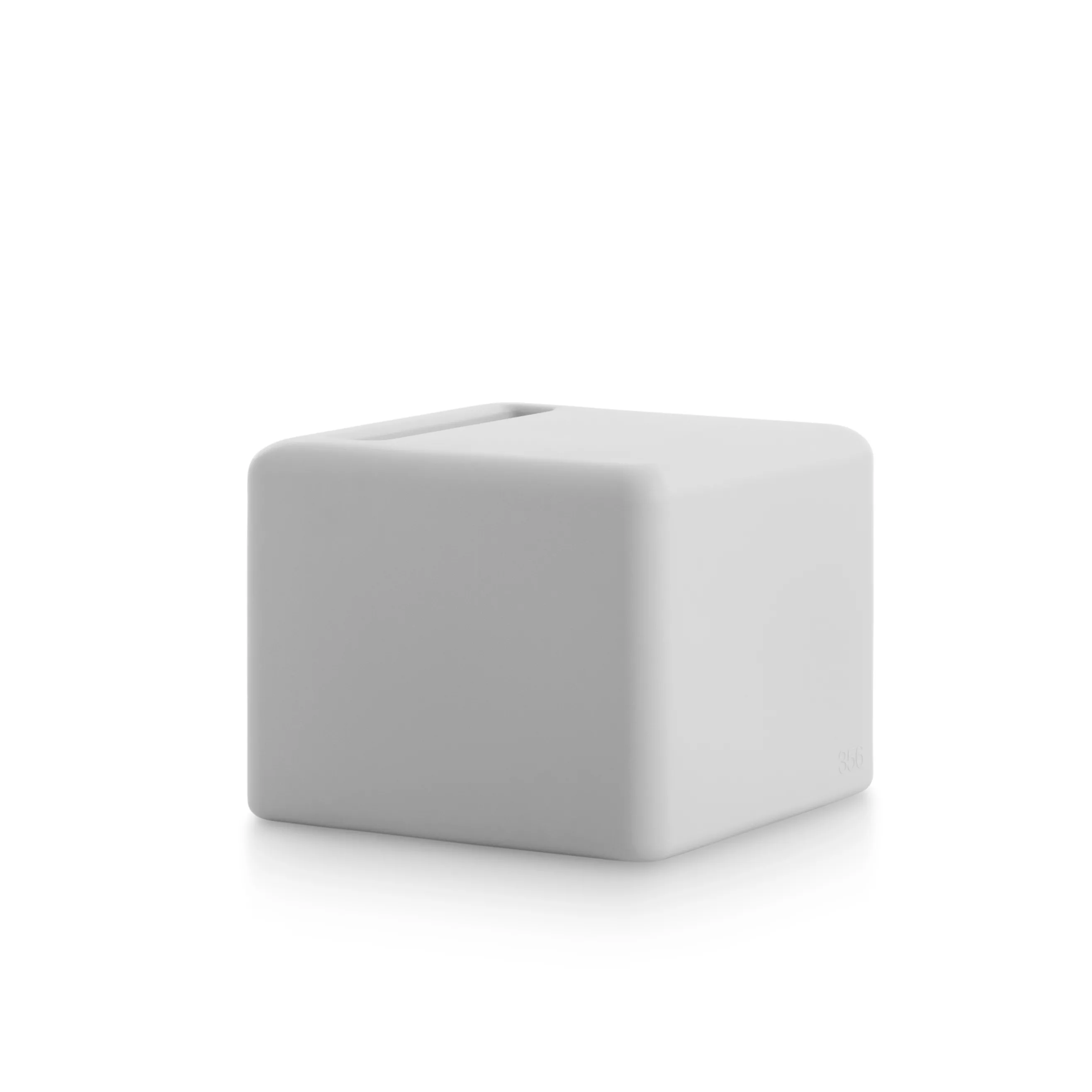 Outdoor-Hocker aus der 356-Kollektion, ein Modell, das auch als Beistelltisch oder als Ergänzung zur Chaiselongue oder zum Sessel aus derselben Serie verwendet werden kann. Er hat ein ganz besonderes Design, mit einer Rille, die über eine ganze Seite des Hockers verläuft. Dieses clevere Detail lässt sich vielseitig nutzen, z.B. um ein Glas zu halten, egal ob man darauf sitzt oder ihn als Beistelltisch benutzt.