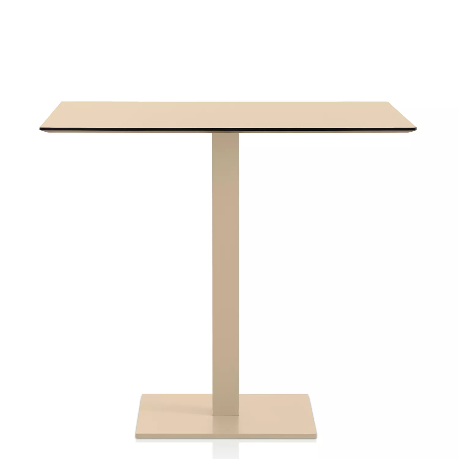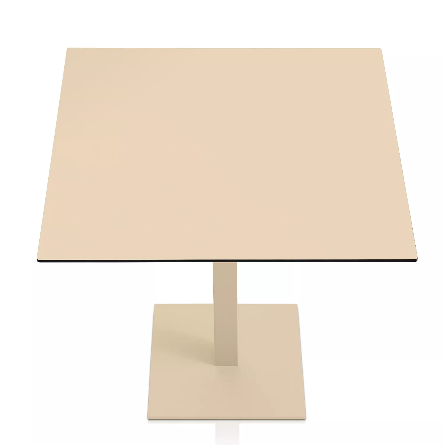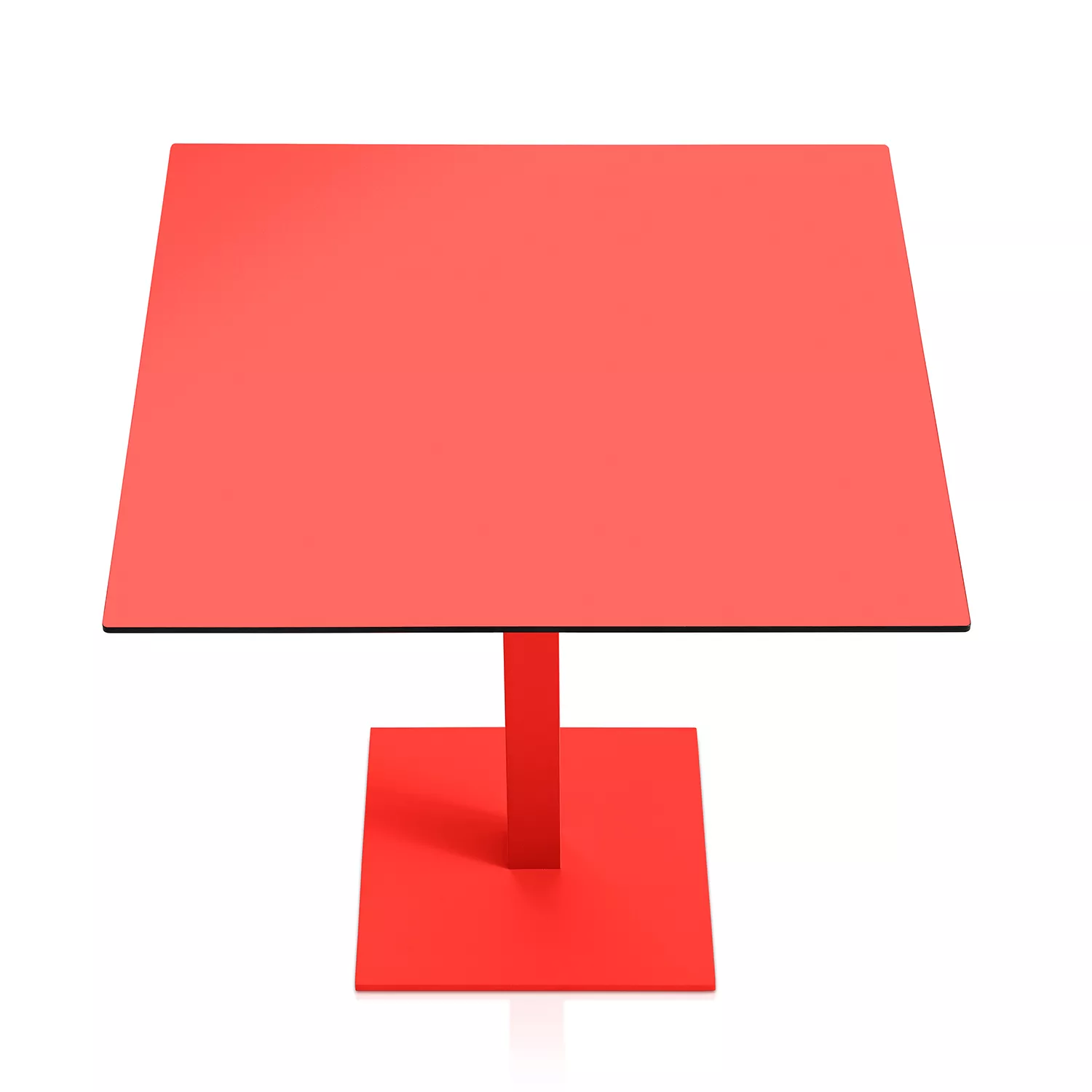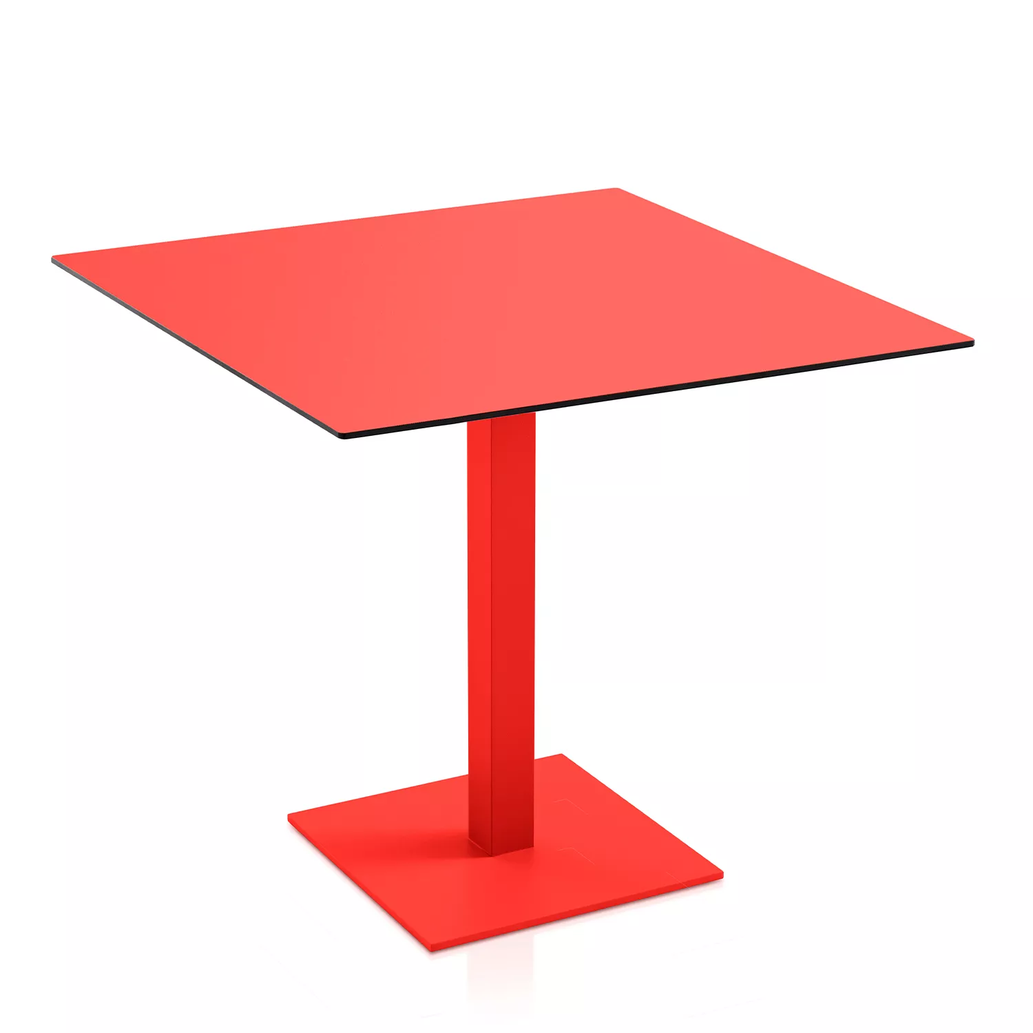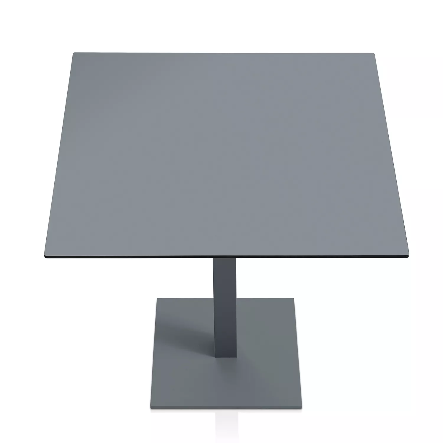 Das Gestell ist aus pulverbeschichtetem Aluminium, in 7 verschiedenen Farbtönen erhältlich. Tischplatte aus Phenolharz.