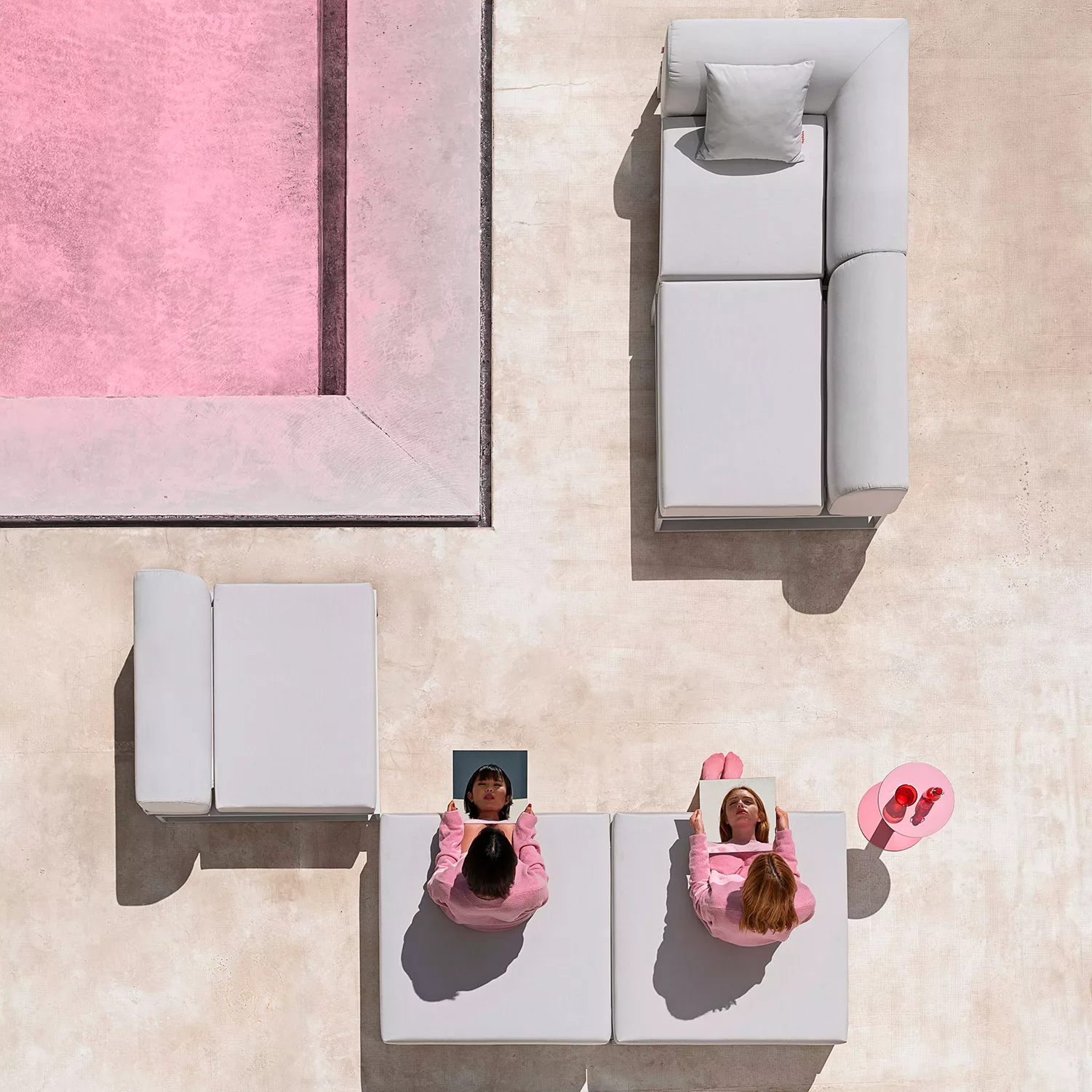 Dies ist das Eckmodul der modularen Kollektion Ploid, ein Stück, das speziell mit einer doppelten Ausrichtung entworfen wurde, so dass es austauschbar auf der linken oder rechten Seite platziert werden kann. Seine durchdachten Proportionen ermöglichen es, dass es nicht nur als Eckmodul oder an den Enden eines mehrsitzigen Sofas funktioniert, sondern auch als einer von nur zwei Sitzen, im Stil eines Loveseats. Außerdem kann es entweder einzeln oder als Teil eines Sofas zu einer Chaiselounge werden, indem man es einfach mit dem Pouf-Modul der Ploid-Kollektion verbindet.