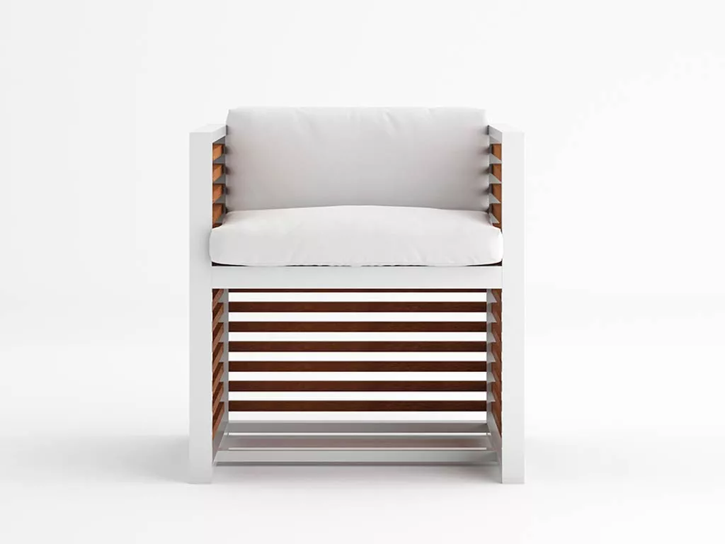 „Ich habe mich stets von dem Lichter- und Schattenspiel der mediterranen Fensterläden angezogen gefühlt. Auch von der Arbeit einiger orientalischen Architekten, die mit Holzleisten und Bambusrohren arbeiten. DNA Teakholz ist eine Kollektion von Möbeln für den Außenbereich, die das Wesen dieser horizontalen Geometrien neu interpretiert.“ José A. Gandia-Blasco