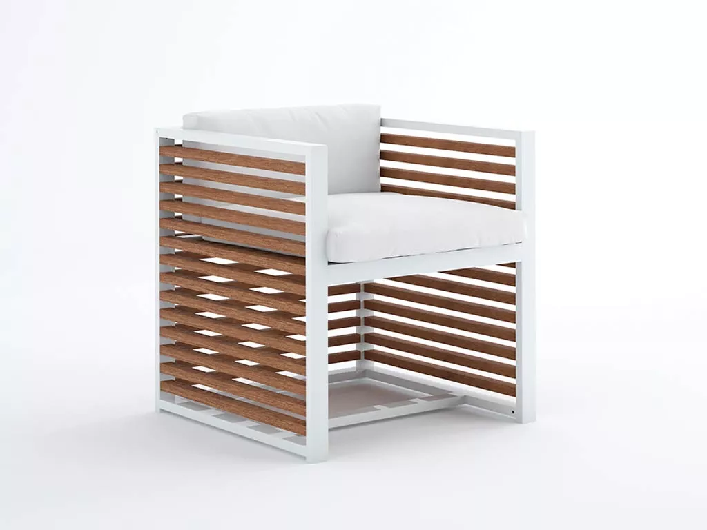 DNA ist die authentischste GANDIABLASCO-Kollektion und beinhaltet in diesem Jahr die Wärme und Haltbarkeit von Teakholz. DNA TEAK ist ein Design von José A. Gandía-Blasco Canales. Die Kastanientöne verbinden sich mit der eloxierten Aluminiumfarbe sowie mit allen in dieser Kollektion erhältlichen pulverbeschichteten Oberflächen. DNA erweitert seine Möglichkeiten, elegante und essentielle Außenräume in kleinen Terrassen oder größeren Auftragsprojekten zu schaffen.