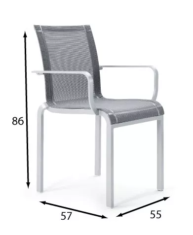 Armlehnstuhl Tandem mit Batyline® Bespannung und Gestell aus lackiertem Aluminium. Das Aluminiumgestell ist mit einer Polyester-Pulverbeschichtung versehen, die besonders widerständsfähig gegenüber Witterungseinflüssen und UV-Strahlung ist. Die Batyline® Bespannung ist UV- und witterungsbeständig und dabei äußerst leicht zu reinigen