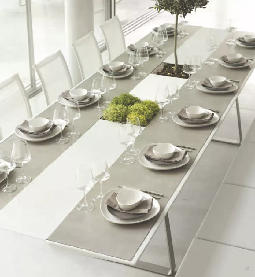 Ego Paris Extrados Tischläufer 90 cm Ego Paris Extrados Gartenmöbel Kollektion. Durch reine Formen und edle Materialien Eleganz suggerieren und Lust erwecken, damit Emotion und Verführungskraft langfristig von Bestand sind. Tischläufer von Ego Paris aus Aluminium, Corian®, oder HPL. Tischläufer aus Aluminium, Corian®, oder HPL Ganzjährig wetterfest Leicht zu reinigen Maße (B × T) 30 × 90 cm