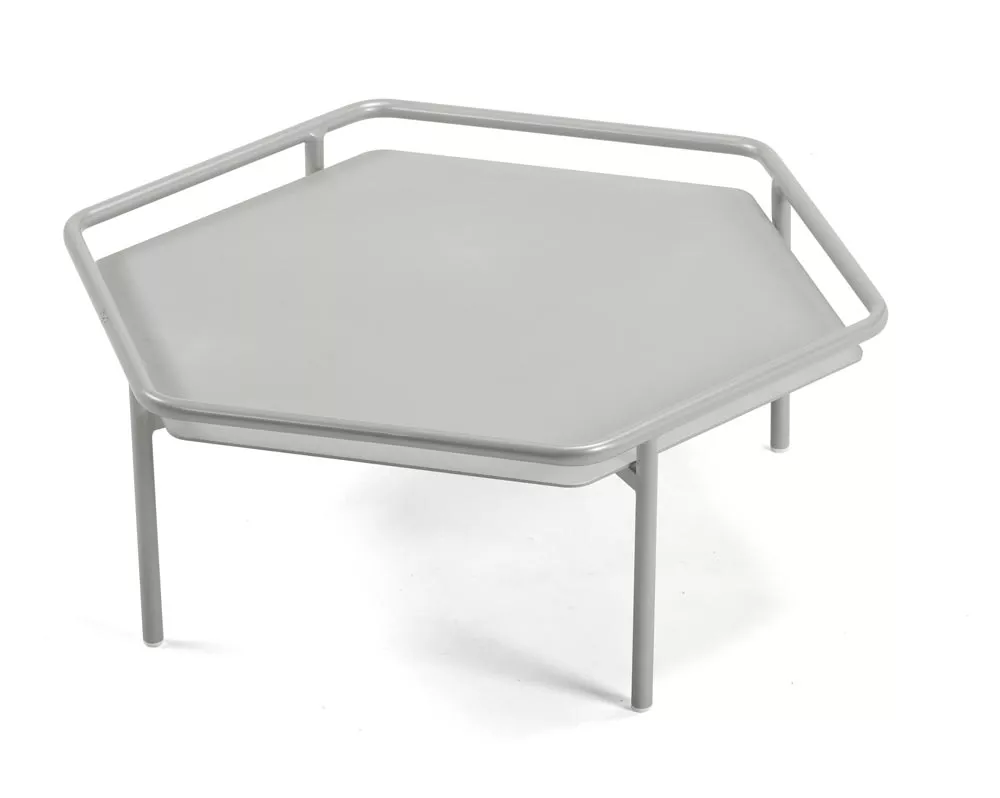 Loungetisch mit einem Gestell aus lackiertem Aluminium.