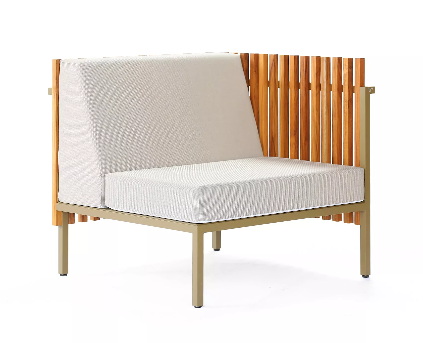 Ego Paris Sutra Eckmodul Pouf Sutra greift die Kollektion Kama in einem grafischen Design auf, für noch mehr Modularität. In einem Materialmix aus Holz und Aluminium spiel die neue Kollektion Sutra mit dem Schatten und das Licht. Produkteigenschaften Minimalistisches / grafisches Design Gestell aus thermolackiertem Aluminium Rückenlehne aus Teakholzlatten Erweiterbar mit Rückenpolster (optional erhältlich) Wetterfeste Materialien Leichte Reinigung Maße: B80 x T80 x H77 / 38 cm Gewicht: 21 kg