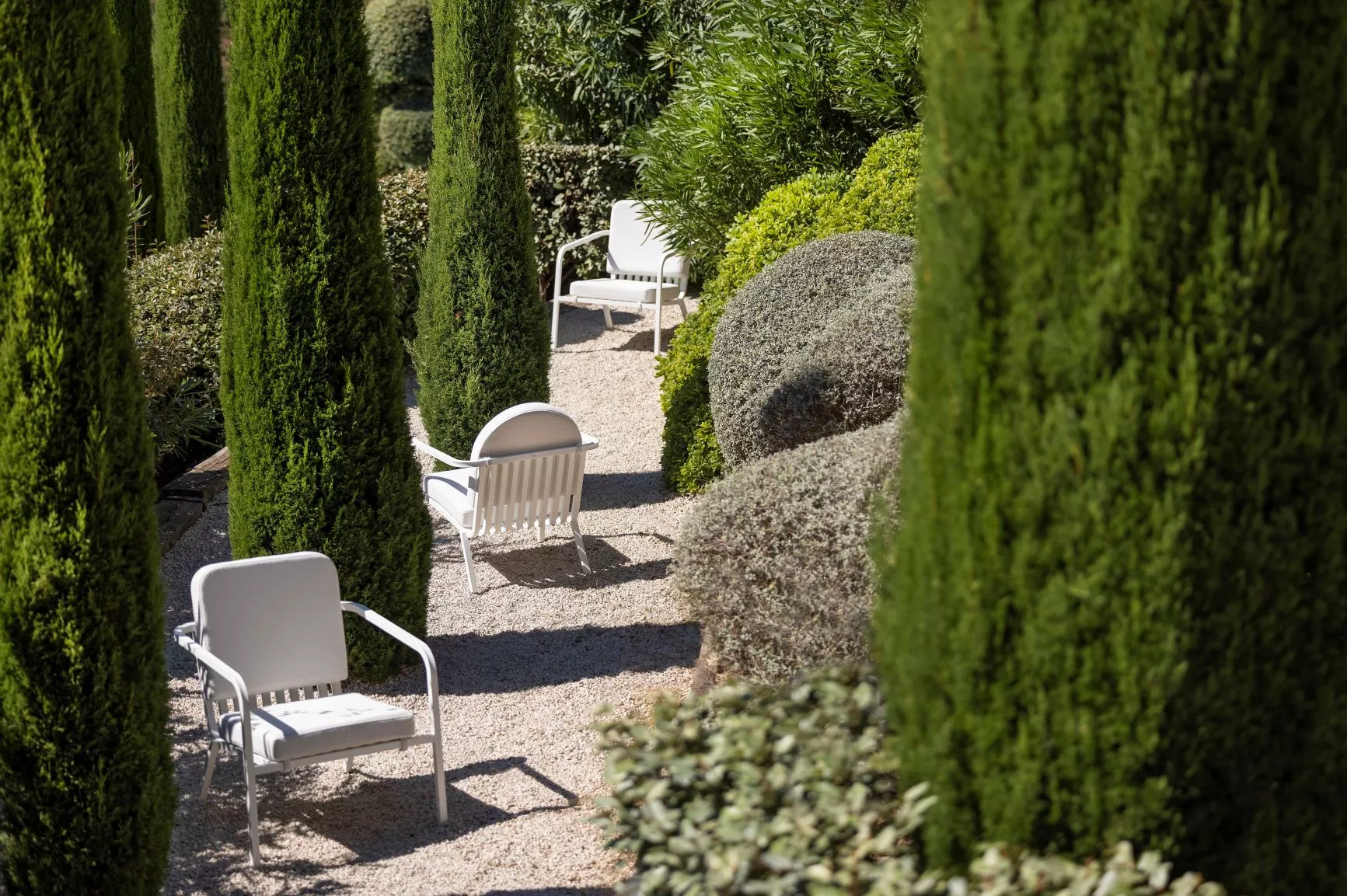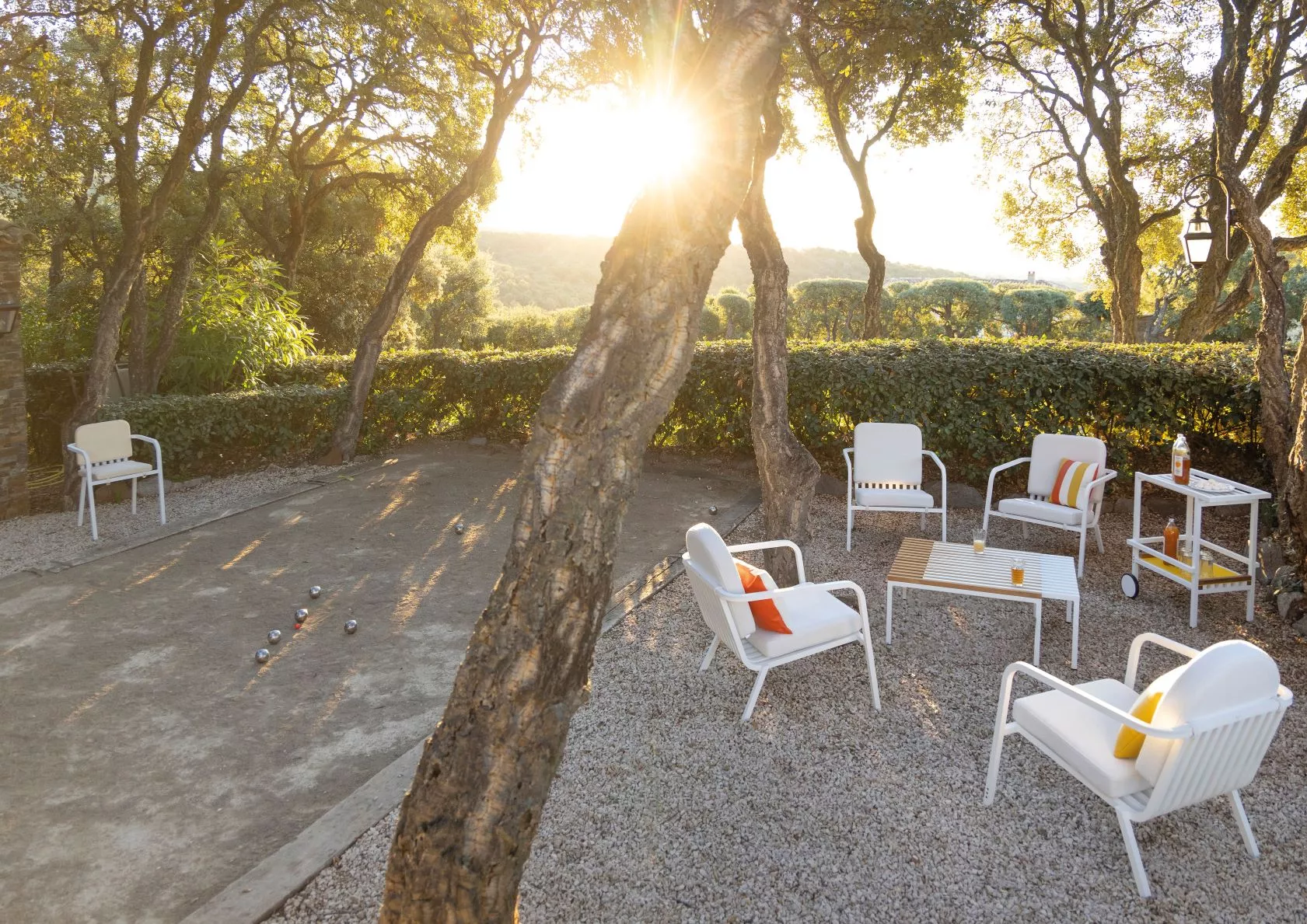 Sutra greift die Kollektion Kama in einem grafischen Design auf, für noch mehr Modularität. In einem Materialmix aus Holz und Aluminium spiel die neue Kollektion Sutra mit dem Schatten und das Licht.