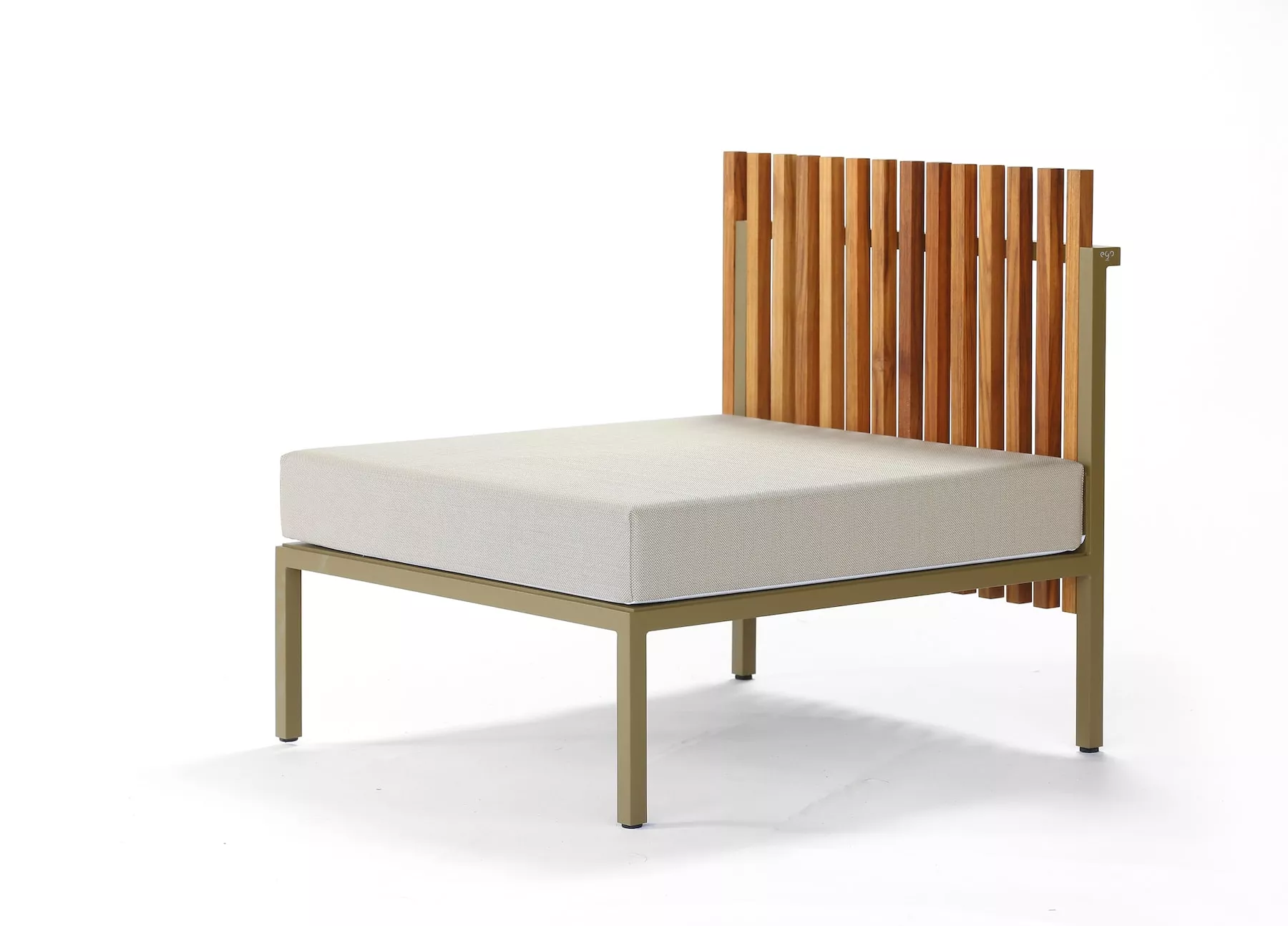 Ego Paris Sutra Mittelmodul Sutra greift die Kollektion Kama in einem grafischen Design auf, für noch mehr Modularität. In einem Materialmix aus Holz und Aluminium spiel die neue Kollektion Sutra mit dem Schatten und das Licht. Produkteigenschaften Minimalistisches / grafisches Design Gestell aus thermolackiertem Aluminium Rückenlehne aus Teakholzlatten Erweiterbar mit Armlehne (optional erhältlich) Wetterfeste Materialien Leichte Reinigung Maße: B75 x T80 x H77 / 38 cm Gewicht: 18 kg