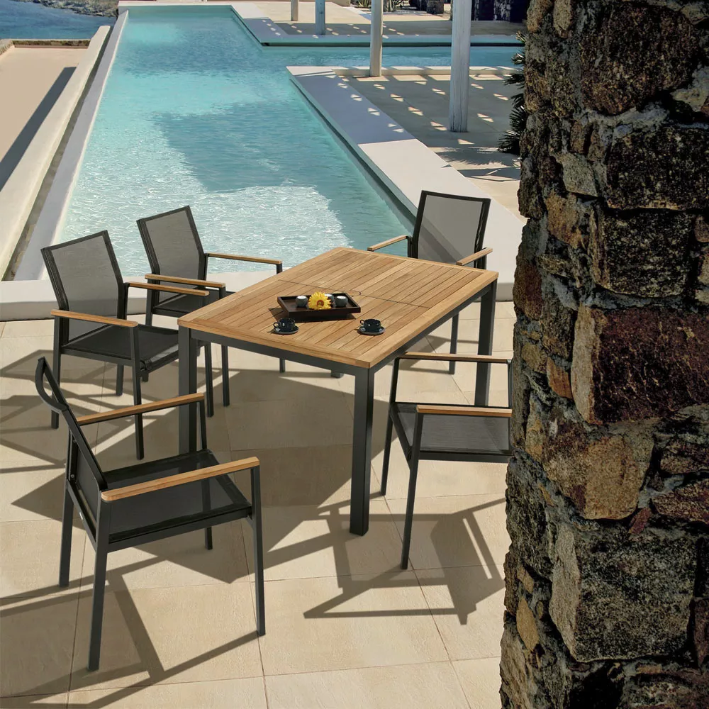- Aluminiumgestell + Teakplatte