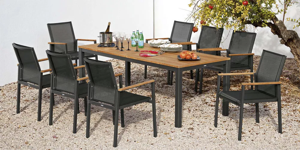- Aluminiumgestell + Teakplatte