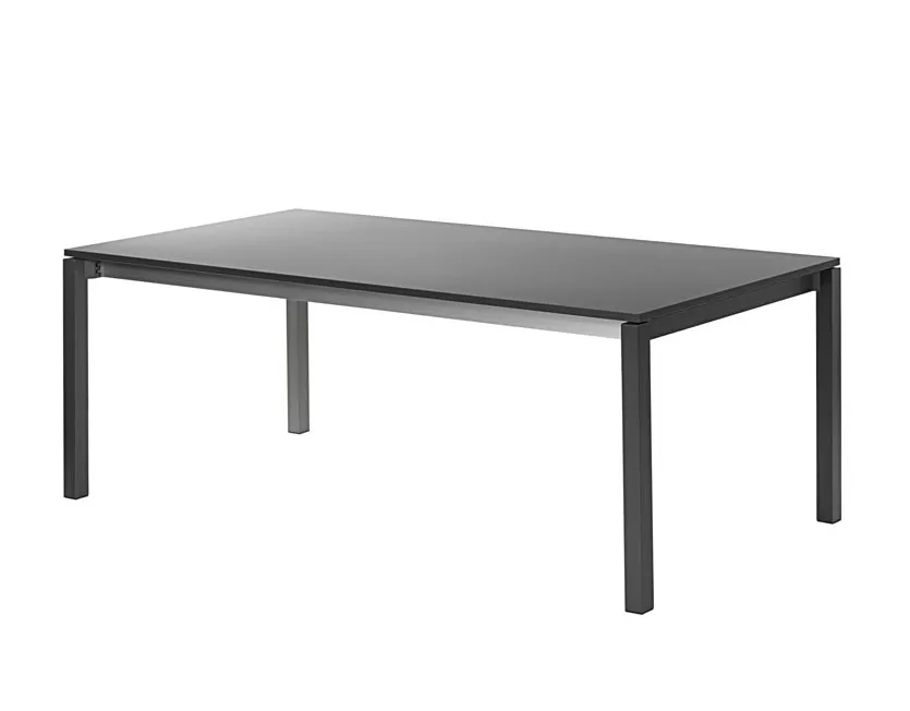 aus Aluminium, metallic-silber pulverbeschichtet oder mit Strukturlack anthrazit matt • Tischbeine quadratisch Das robuste Aluminiumgestell der Rio Tische in anthrazit oder metallic-silber ist eine perfekte Verbindung zu allen Stühlen aus dem gleichen Material. Die stabilen Tischbeine (50x50mm) in Verbindung mit dem solide verschweißten Rahmen tragen auf elegante Weise die unterschiedlichen Tischplatten. Oberflächen aus fm-laminat spezial, fm-ceramtop oder Teak ermöglichen eine perfekte Kombination zu den Rio Sesseln, aber auch zu vielen anderen Sesseln unseres Sortiments. Schraubgleiter ermöglichen einen Höhenausgleich bei Bodenunebenheiten.Rio Outdoor Esstisch mit eingerückter Zarge