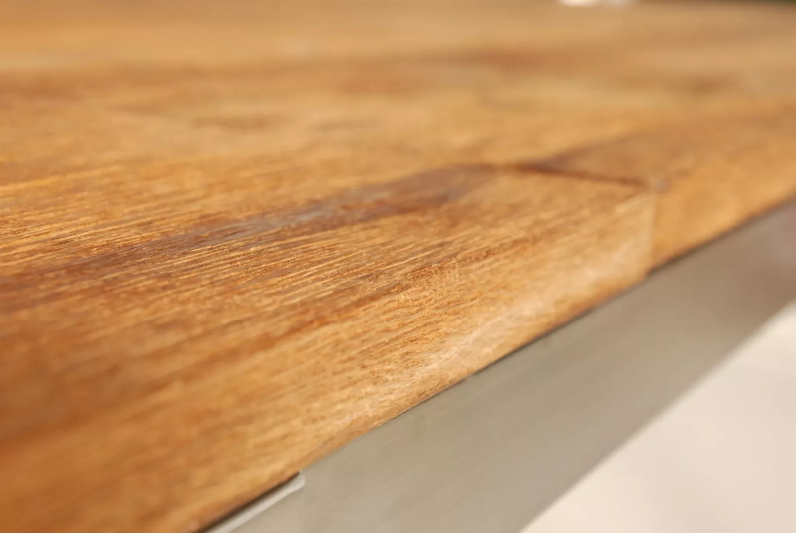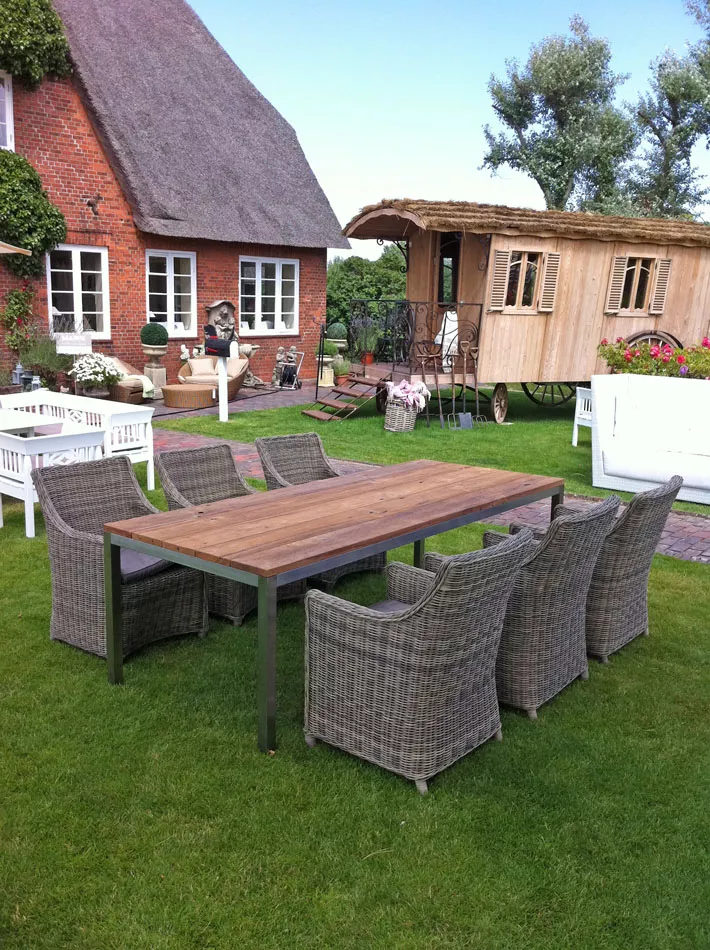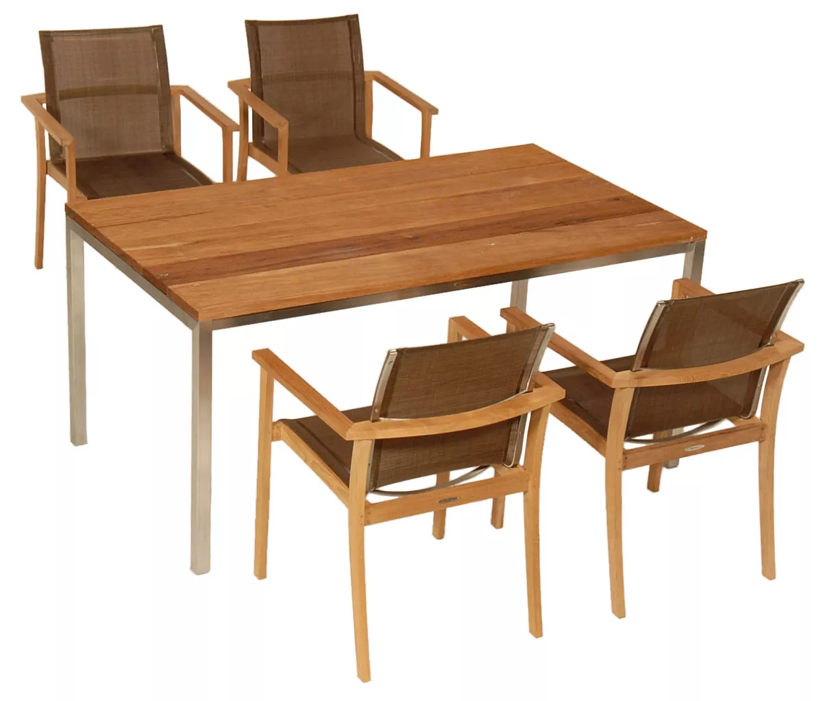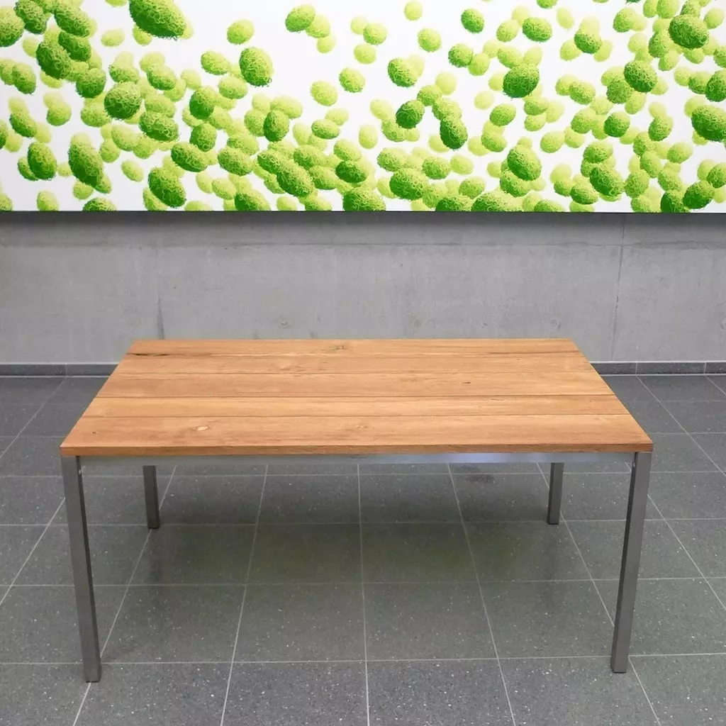 Dieser Esstisch, mit einem kompromisslosen Komfort, besticht durch die elegante Zusammenstellung der hochwertigen Materialien: Teakholz der Güteklasse „A“, und Edelstahlkomponenten.