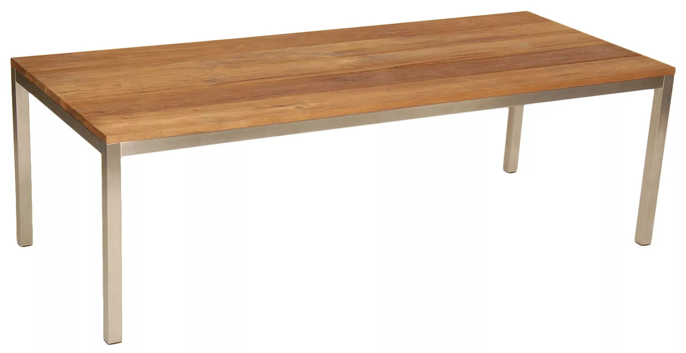 Esstisch Vintage von Royal Mirage® (verschiedene Größen) mit Tischplatte aus Teakholz und einem Gestell aus Edelstahl.
