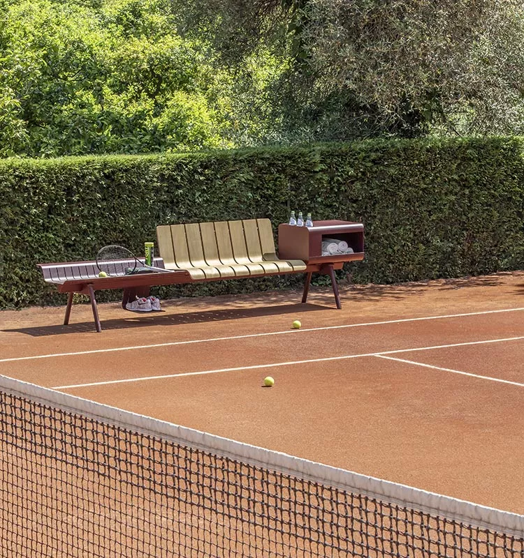 Mit der von Patrick Norguet entworfenen Ace-Kollektion begibt sich Ethimo auf ein neues Abenteuer und präsentiert eine Kollektion origineller Gartenmöbel für den Außensport, benannt nach dem siegreichen Aufschlag im Tennis. Ace wurde für die attraktive Ausstattung von Tennisplätzen, Schwimmbädern, Sportclubs und exklusiven Resorts entworfen und passt sich perfekt an den jeweiligen Kontext an. Die verschiedenen möglichen Konfigurationen unterstreichen die außergewöhnliche Flexibilität und Vielseitigkeit des Projekts, das nicht nur für Profi-Rennstrecken und große Sportveranstaltungen, sondern auch für normale sportliche Aktivitäten gedacht ist.