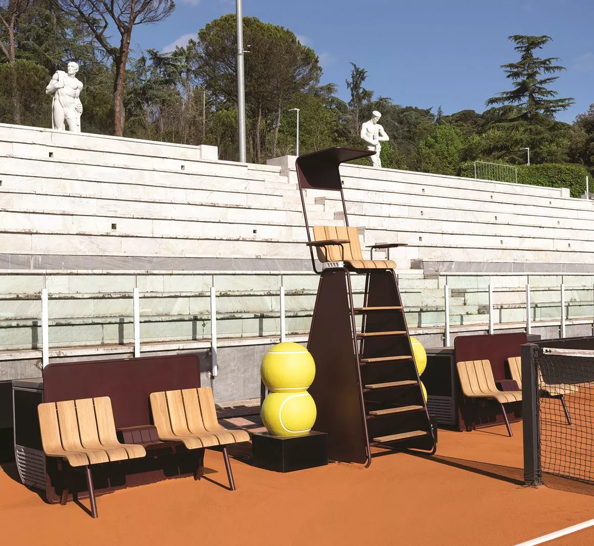 Mit der von Patrick Norguet entworfenen Ace-Kollektion begibt sich Ethimo auf ein neues Abenteuer und präsentiert eine Kollektion origineller Gartenmöbel für den Außensport, benannt nach dem siegreichen Aufschlag im Tennis. Ace wurde für die attraktive Ausstattung von Tennisplätzen, Schwimmbädern, Sportclubs und exklusiven Resorts entworfen und passt sich perfekt an den jeweiligen Kontext an. Die verschiedenen möglichen Konfigurationen unterstreichen die außergewöhnliche Flexibilität und Vielseitigkeit des Projekts, das nicht nur für Profi-Rennstrecken und große Sportveranstaltungen, sondern auch für normale sportliche Aktivitäten gedacht ist.