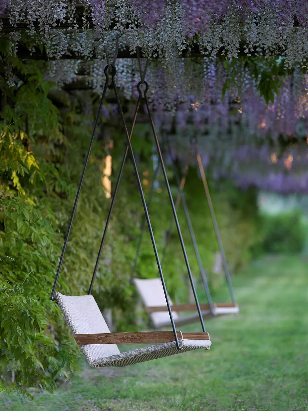 Allaperto Nautic gestaltet die gesamte Lounge und kombiniert Teak mit Polypropylen-Seil, einem recycelbaren und 100% Outdoor-Material. Der neue Hängesessel, auch in einer Swing-Version mit selbst tragendem Gestell erhältlich, ist eine ungewöhnliche Einladung zum "Schwingen" im Freien: minimale Bewegung, maximaler Komfort. Das Nautic Mood lässt sich von der maritimen Welt inspirieren und kombiniert edles Teakholz mit einem handwerklichen Fischgräte-Seilgewebe, das die Sitze mit Persönlichkeit auszeichnet und für Langlebigkeit und Widerstandsfähigkeit sorgt.