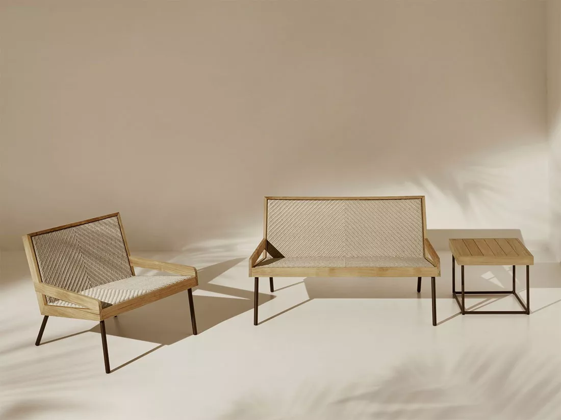 Allaperto Nautic gestaltet die gesamte Lounge und kombiniert Teak mit Polypropylen-Seil, einem recycelbaren und 100% Outdoor-Material. Der neue Hängesessel, auch in einer Swing-Version mit selbst tragendem Gestell erhältlich, ist eine ungewöhnliche Einladung zum "Schwingen" im Freien: minimale Bewegung, maximaler Komfort. Das Nautic Mood lässt sich von der maritimen Welt inspirieren und kombiniert edles Teakholz mit einem handwerklichen Fischgräte-Seilgewebe, das die Sitze mit Persönlichkeit auszeichnet und für Langlebigkeit und Widerstandsfähigkeit sorgt.