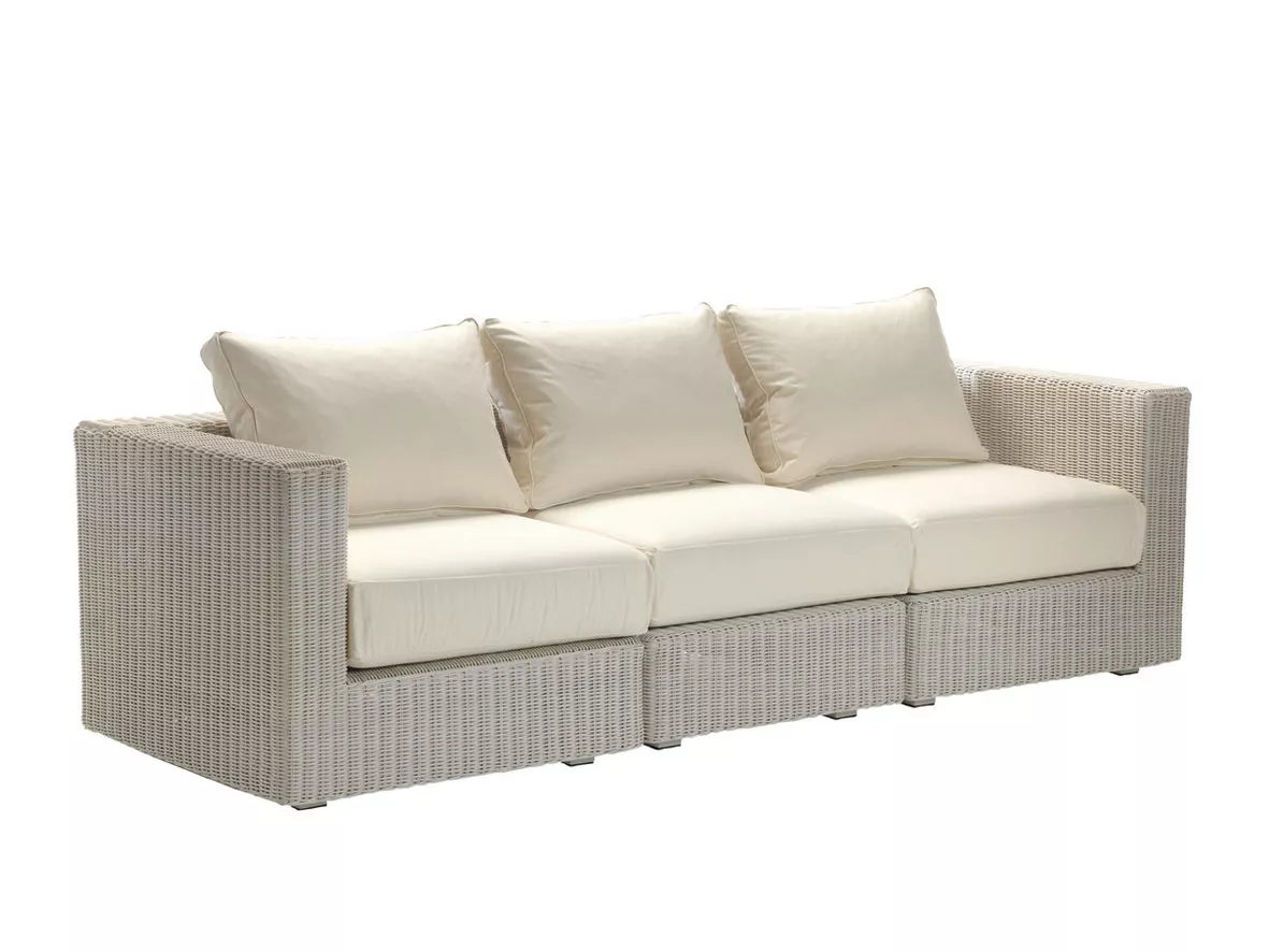 Ethimo Cube Lounge Sofa | 3-Sitzer Das EtWick® Geflecht der Ethimo besteht aus einem recycelbaren Kunststoff, dass absolut resistent gegen Witterungseinflüsse ist und im Laufe der Zeit farbbestängig bleibt. Es ist handgeflochten und hat eine raue Oberfläche, die sich ganz gut anfühlt und sehr natürlich aussieht. Geflecht in 2 Farben - Bark oder White, handgeflochten die Herstellung dieser hochwertigen Möbel erfolgt in erstklassiger Qualität UV-, witterungs- und farbbeständig leicht zu reinigen Maße (B × T × H): 43 × 43 × 42 cmSitzhöhe: 42 cmGewicht: 5,2 kg
