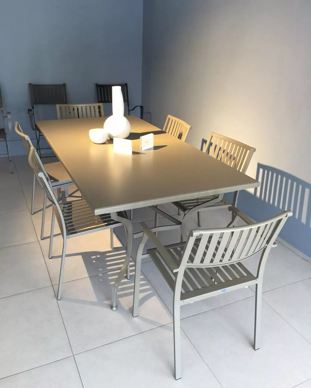 Ethimo Elisir Esstisch XL | ausziehbar Die Kollektion Elisir von Ethimo ist komplett aus Stahl hergestellt und zeichnet sich durch ein leichtes, ausgewogenes Design, extreme Funktionalität, Zweckmäßigkeit und Robustheit aus. Sie umfasst Tische, Armlehnstühle, Sofas, Kaffeetische sowie verstellbare Sonnenliegen. Gestell aus Stahl die Herstellung dieser hochwertigen Möbel erfolgt in erstklassiger Qualität UV-, witterungs- und farbbeständig leicht zu reinigen Maße (B × T × H): 200-260 × 100 × 76 cmGewicht: 85 kg