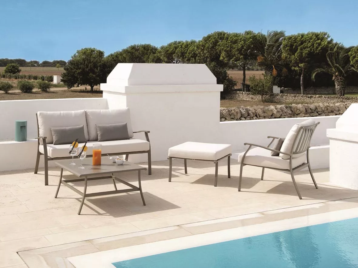 Die Kollektion Elisir von Ethimo ist komplett aus Stahl hergestellt und zeichnet sich durch ein leichtes, ausgewogenes Design, extreme Funktionalität, Zweckmäßigkeit und Robustheit aus. Sie umfasst Tische, Armlehnstühle, Sofas, Kaffeetische sowie verstellbare Sonnenliegen.
