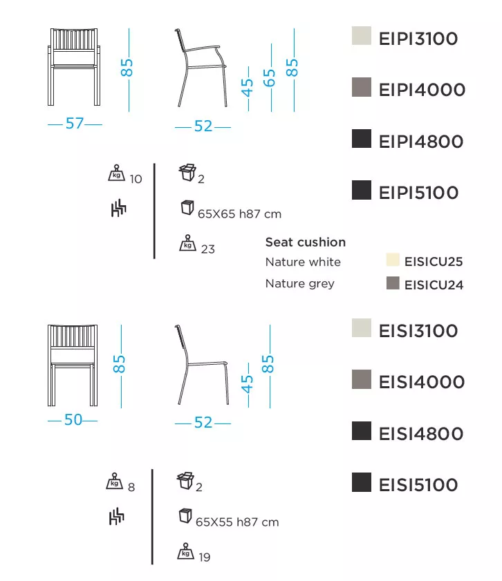 Ethimo Elisir Essstuhl 2er-Set | stapelbar Die Kollektion Elisir von Ethimo ist komplett aus Stahl hergestellt und zeichnet sich durch ein leichtes, ausgewogenes Design, extreme Funktionalität, Zweckmäßigkeit und Robustheit aus. Sie umfasst Tische, Armlehnstühle, Sofas, Kaffeetische sowie verstellbare Sonnenliegen. stapelbar Gestell aus Stahl die Herstellung dieser hochwertigen Möbel erfolgt in erstklassiger Qualität UV-, witterungs- und farbbeständig leicht zu reinigen Maße (B × T × H): 50 × 50 × 85 cmSitzhöhe: 45 cmGewicht: 7 kg