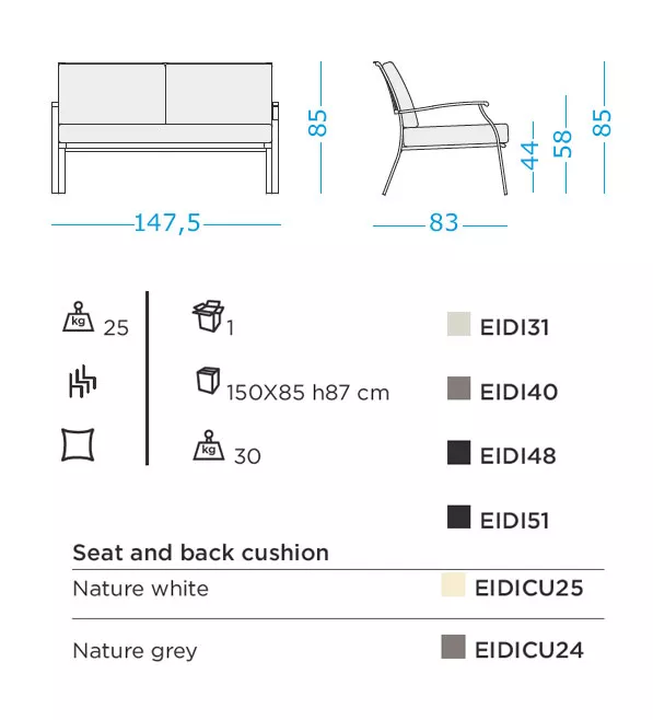 147,5 × 83 × 85 cm