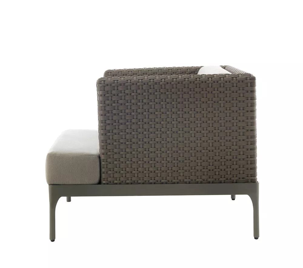 Ethimo Infinity Lounge Eckmodul XL | L+RDie Infinity-Kollektion verdankt ihren Namen dem unbegrenzten Kompositionspotenzial ihrer Elemente: ein vielseitiges und einladendes System von Lounge-Sitzen, das mit Stühlen, Tischen und Liegen für jeden Raum und jede Anforderung kombiniert werden kann. Die Lightwick-Faser verleiht zusätzlichen natürlichen Komfort. Eine Lounge-Kollektion, in der geflochtene Faser auf Metall trifft, um bequeme Sonnenliegen und anspruchsvolle modulare Lounge-Sets zu schaffen. Aluminiumgestell Syntetikgeflecht Sitz- und Rückenkissen in Acrylic die Herstellung dieser hochwertigen Möbel erfolgt in erstklassiger Qualität UV-, witterungs- und farbbeständig leicht zu reinigenArmlehnen links oder rechts (sitzend) Maße (B × T × H): 160 × 90 × 72 cmSitzhöhe: 38 cmGewicht: 38,5 kg