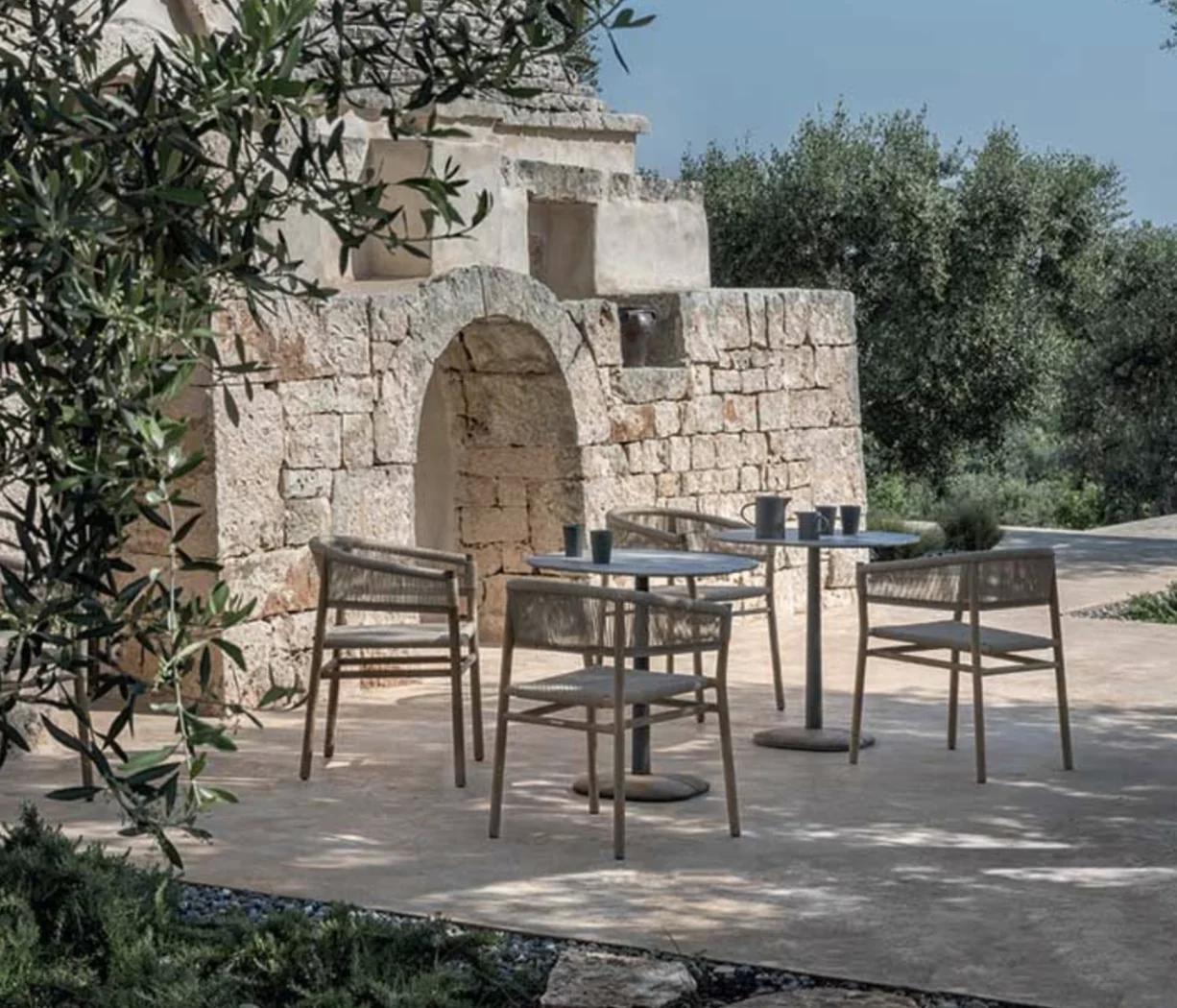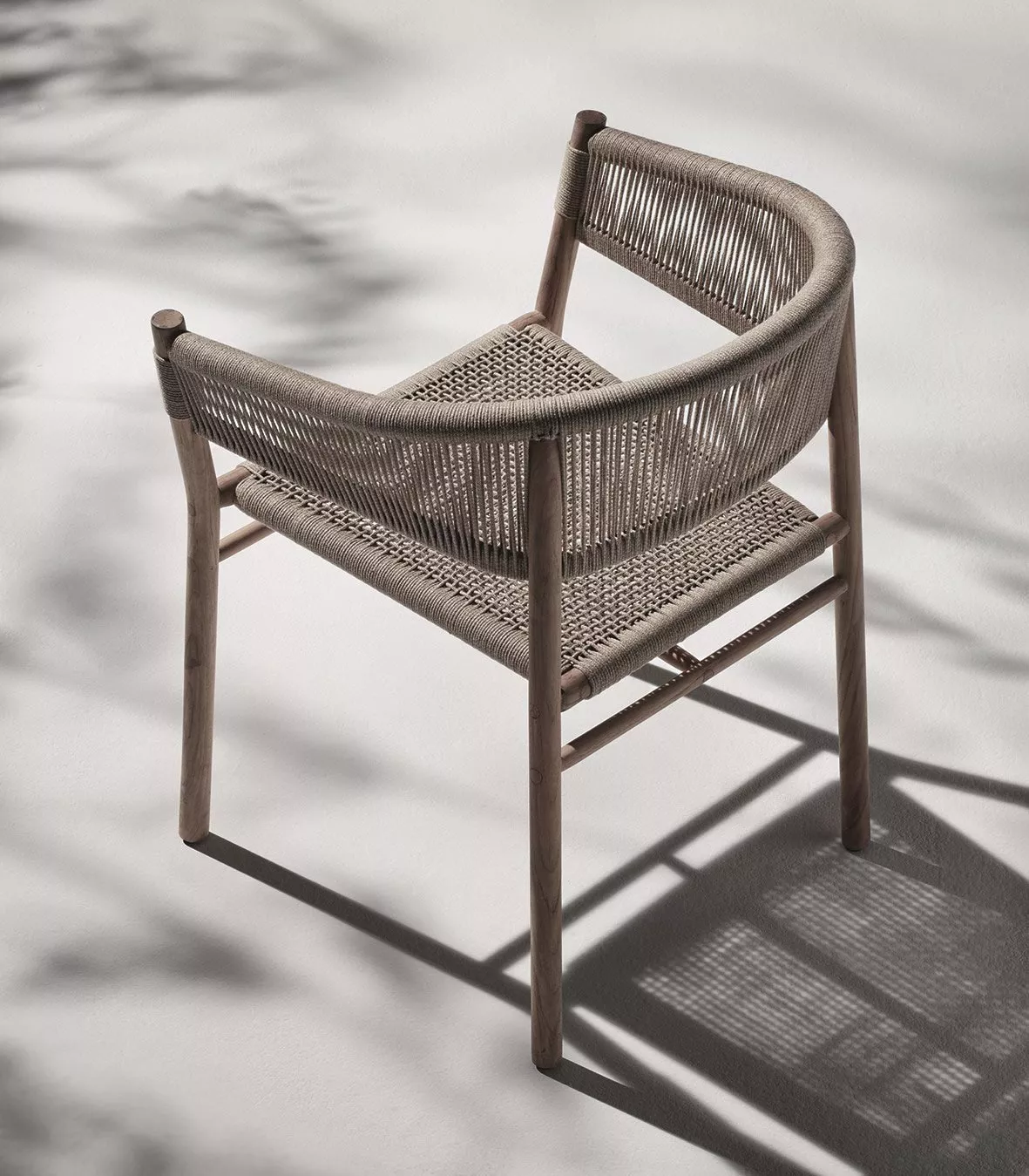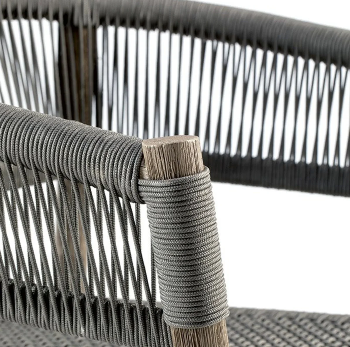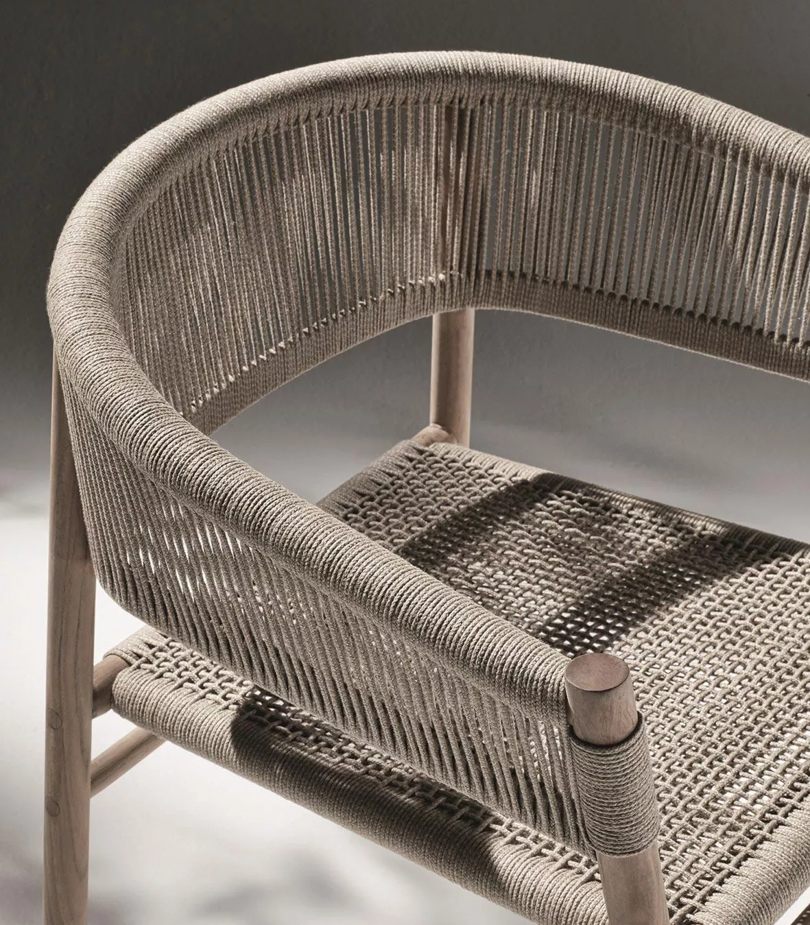 Die für die Sitzflächen und Rückenlehnen der Kollektion Ethimo verwendeten Seile stellen das Ergebnis eingehender Untersuchungen dar. Das PVC mit Nylonkern, das in unterschiedlichen Querschnitten und Farben hergestellt wird, zeichnet sich durch seine außergewöhnliche Widerstandsfähigkeit und seine glänzende Farbe und Oberfläche aus. Das Polypropylen der Ausführung Flat Rope sowie das für die Ausführung Round Rope verwendete Acryl sind beständig gegen UV-Strahlen, Abrieb und Witterungseinflüsse und gewährleisten gleichzeitig Dichtigkeit und Komfort.