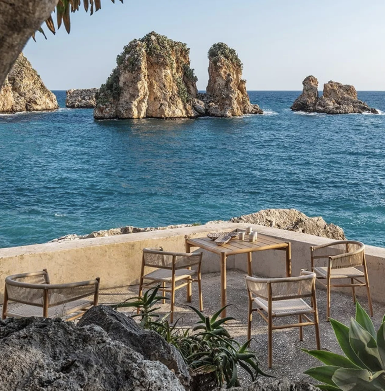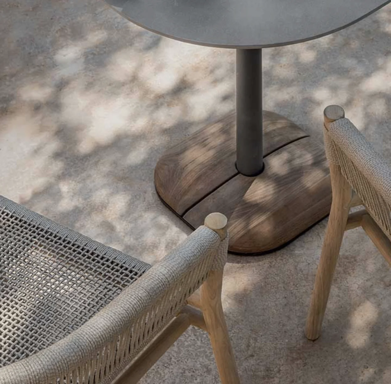 Aus der Zusammenarbeit zwischen Ethimo und Marcello Ziliani entwickelte sich Kilt, eine moderne Kollektion von Gartenstühlen mit Seilgeflecht. Kilt vereint die besten Eigenschaften eines für den Außenbereich bestimmten Designs in einem einzigen Produkt. „Kilt wurde durch den berühmten Wickelrock inspiriert, welcher von den stolzen Bewohnern der Highlands getragen wird“, erklärt der Designer Marcello Ziliani. „Auf dieselbe Weise umgibt die Rückenlehne die Sitzfläche, ohne mit ihr verbunden zu sein – wie der Rock, bei dem die Knie frei bleiben.“ Gartenstuhl Kilt ist ein vielseitiges Möbelstück, das in der Lage ist, sich auf originelle Weise den verschiedensten Stilen anzupassen und das Ambiente zu interpretieren, ohne das farbliche oder ästhetische Gleichgewicht zu beeinträchtigen. Die Kollektion wird mit einem Teakholz- oder Edelstahlgestell geliefert. Das Teakholz, das die Möbelstücke dieser Serie kennzeichnet, wird sorgfältig von Ethimo ausgewählt und verarbeitet.