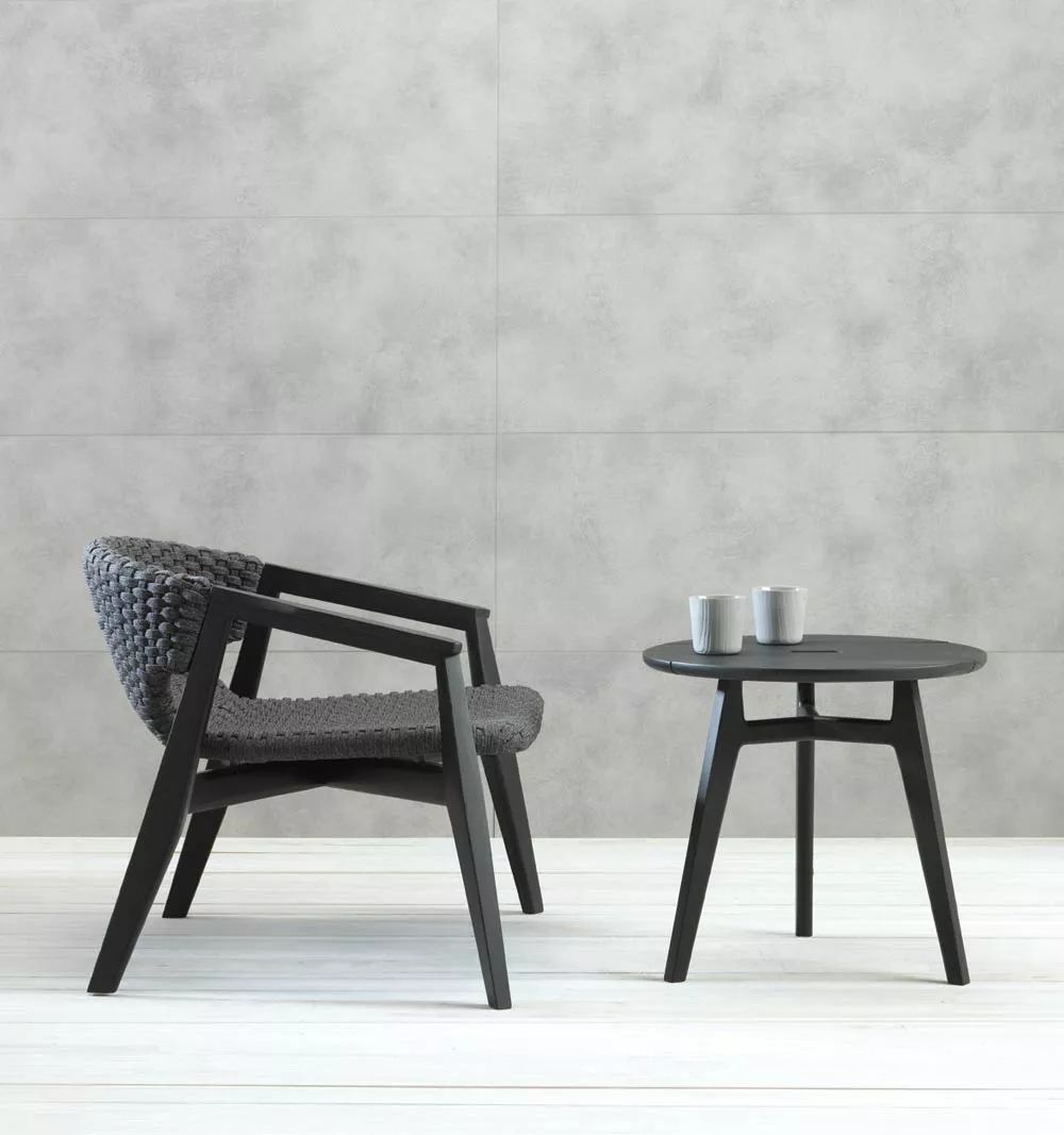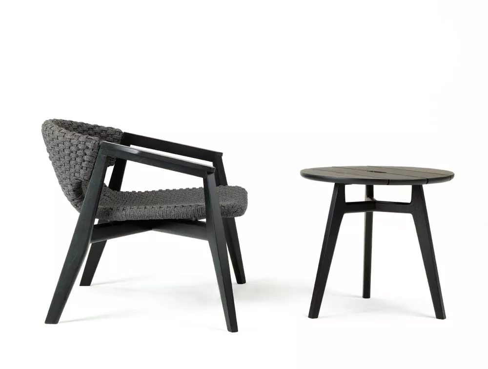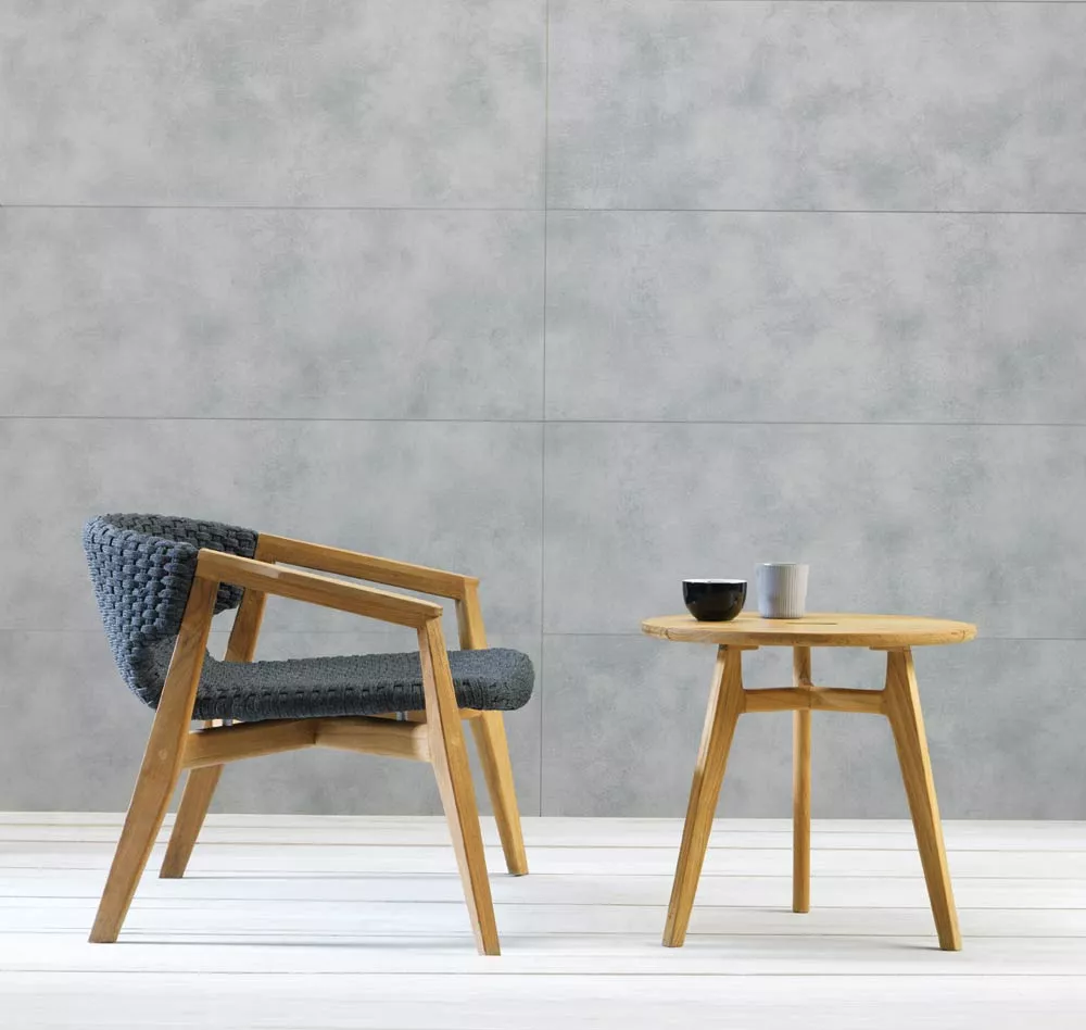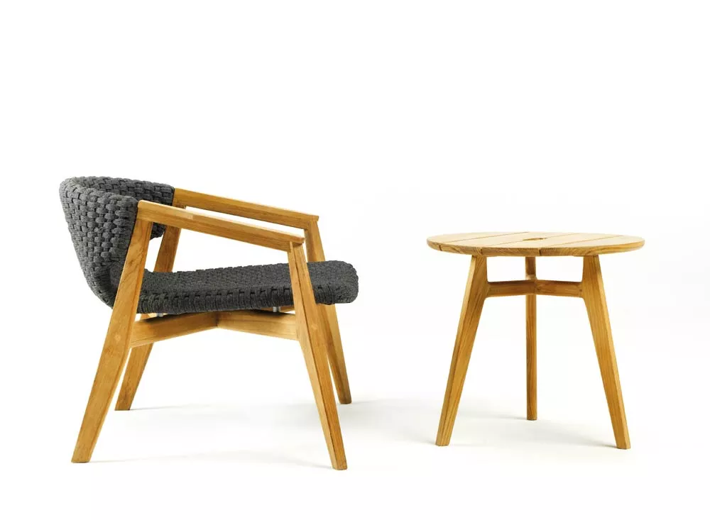 Die Kollektion Knit, erstmals vorgestellt auf der Mailänder Möbelmesse 2014, eröffnet die Zusammenarbeit zwischen Ethimo und Patrick Norguet, französischer Stardesigner, der mit modernen, puristischen Formen und stofflichen Empfindungen, einer besonderen Harmonie, Wärme und Schönheit nachspürt. Ethimo hat den Entwurf von Patrick Norguet, eine originelle Synthese aus Ästhetik und Funktion für das Leben im Freien, in Produkte verwandelt, die mit größter Sorgfalt in jedem Detail ausgeführt sind: vom Gestell der Tische und Stühle aus Teakholz bis zum synthetischen Flechtwerk des Lehnstuhls, auf elegante Weise ideal für Garten und Terrasse. Knit ist nicht nur raffiniert, sondern auch intelligent in jedem Detail; so der mittlere Schlitz im runden Tisch, der einen praktischen Griff für seinen Transport abgibt.