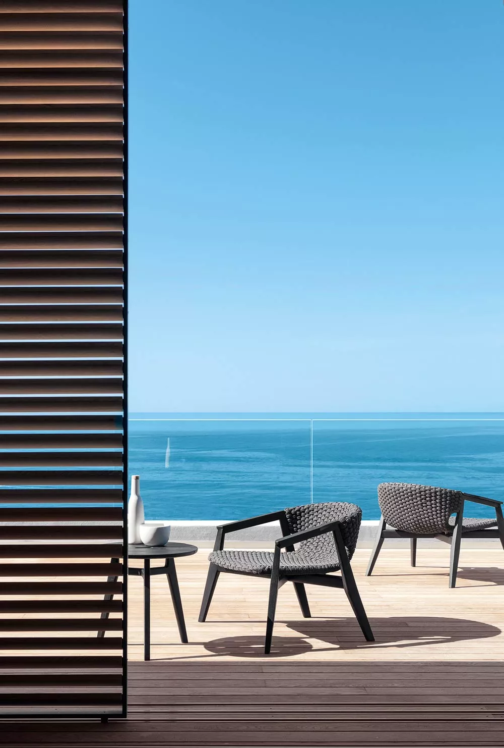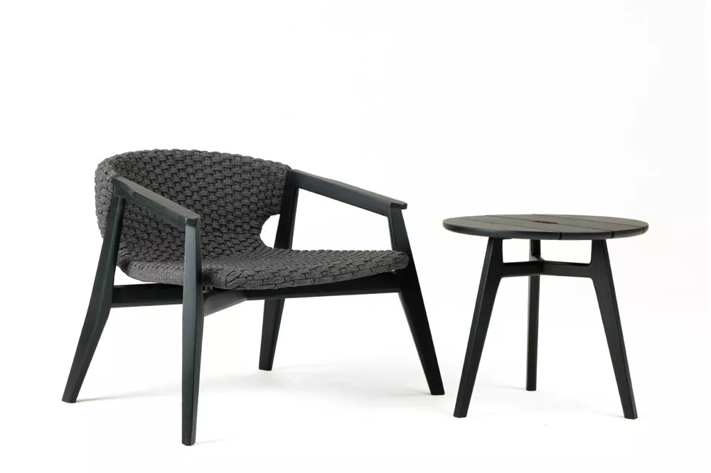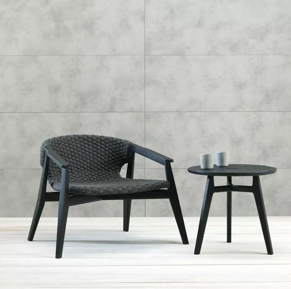 Die Kollektion Knit, erstmals vorgestellt auf der Mailänder Möbelmesse 2014, eröffnet die Zusammenarbeit zwischen Ethimo und Patrick Norguet, französischer Stardesigner, der mit modernen, puristischen Formen und stofflichen Empfindungen, einer besonderen Harmonie, Wärme und Schönheit nachspürt. Ethimo hat den Entwurf von Patrick Norguet, eine originelle Synthese aus Ästhetik und Funktion für das Leben im Freien, in Produkte verwandelt, die mit größter Sorgfalt in jedem Detail ausgeführt sind: vom Gestell der Tische und Stühle aus Teakholz bis zum synthetischen Flechtwerk des Lehnstuhls, auf elegante Weise ideal für Garten und Terrasse. Knit ist nicht nur raffiniert, sondern auch intelligent in jedem Detail; so der mittlere Schlitz im runden Tisch, der einen praktischen Griff für seinen Transport abgibt.