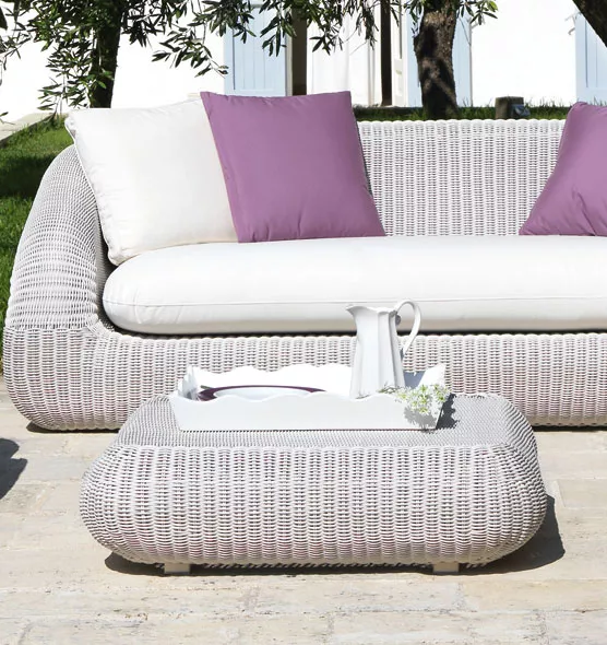 Handgeflochtene Kaffetische Ethimo Loto zeichnen sich durch das natürlich wirkende EtWick® Gestell mit rauer Oberfläche aus. Das EtWick® Geflecht der Ethimo besteht aus einem recycelbaren Kunststoff, dass absolut resistent gegen Witterungseinflüsse ist und im Laufe der Zeit farbbestängig bleibt.