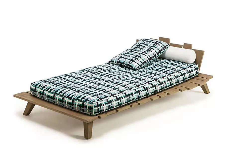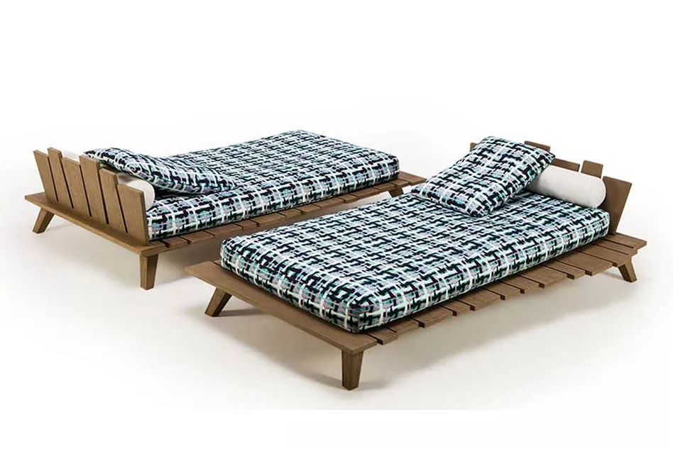 Ethimo Rafael Daybed | L+RRafael ist eine kreative Loungemöbel-Kollektion, die das Sinnbild einer exotischen, aus der zeitgenössischen Vorstellungskraft hervorgehenden Idee präsentiert, die Essenz der faszinierendsten Orte der Welt einfängt, um außergewöhnliche Wohlfühlgefühle zu wecken und neue Outdoor-Wohnerlebnisse zu schaffen. Diese Kollektion wurde kreiert, um die exklusivsten Außenbereiche mit ihrer eigenen Persönlichkeit einzigartig zu machen. Sie nimmt die sich verändernden, facettenreichen Formen der Natur auf und bewahrt ihre vitalen Einflüsse, die in der Stärke ihrer Linien und der rauen Schönheit der Materialien ihren vollen Ausdruck finden. Das moderne Design, die hochwertigen Materialien und Dekoration erzeugen auf diese Weise Gartenmöbel mit einer vielseitigen Seele, robuste, einladende Möbelstücke, die Farbe und Energie ausdrücken. Die feine handwerkliche Verarbeitung von Teak, Marmor und Lavastein kombiniert sich mit der raffinierten Auswahl an Stofffarben, die von Paola Navone entworfen wurden und die Polstermöbel aufwerten.Teak Das von Ethimo ausgewählte Teakholz stammt aus den kontrollierten Plantagen Thailands und Indonesiens. Es ist ein hervorragendes Material hochwertiger Qualität, ideal für die Herstellung von Gartenmöbeln, da es auch bei Temperaturschwankungen, Wasser, Feuchtigkeit und Salz extrem haltbar ist. Gebeiztes Teak Um dem Teakholz bester Qualität einen Vintage–Charme zu verleihen, wird dieses gebeizt. Vor allem wird es gebürstet, so dass die Oberfläche rauer wird und älter erscheint, indem ihm seine natürliche ölige Patina genommen wird. Dann wird es mit einer Behandlung geschützt, die es von Anfang an Grau erscheinen lässt. Mit der Zeit nimmt es die natürliche silbergraue Patina unbehandelten Teakholzes an und erhält beim anfassen den gebürsteten Touch. Diese Art Teakholz darf nicht mit Öl behandelt, sondern nur mit Wasser und Seife gewaschen werden.Teakholzgestell (gebeizt oder natur) die Herstellung dieser hochwertigen Möbel erfolgt in erstklassiger Qualität UV-, witterungs- und farbbeständig leicht zu reinigenArmlehne links oder rechts (sitzend) Maße (B x T x H):208 x 110 x 90 cmSitzhöhe: 38 cm