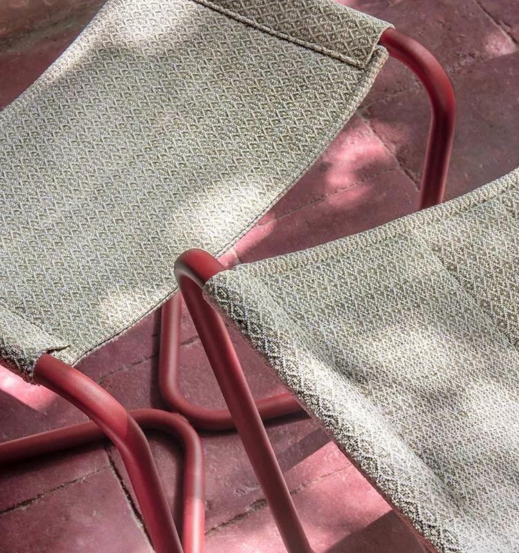 Der Sling Chair ist vom Vintage-Camping der siebziger Jahre inspiriert. Die Schlichtheit seines Designs verbirgt die Anziehungskraft einer absolut trendigen Ästhetik und einer funktionellen Persönlichkeit, die einem ikonischen Element Leben einhaucht, das jedem Ambiente Charakter verleiht. Sling Gartenstuhl ist eine freie" ergonomische Sitzlösung, die die notwendige Stabilität und Widerstandsfähigkeit mit außergewöhnlichem Komfort verbindet. Das Gestell aus rostfreiem Stahlrohr ist in verschiedenen Bronzetönen erhältlich. Der Stoff aus Elitis-Gewebe definiert die Sitzfläche und die vielen verfügbaren Farben und Muster ermöglichen verschiedene Stile und eine individuelle Gestaltung.