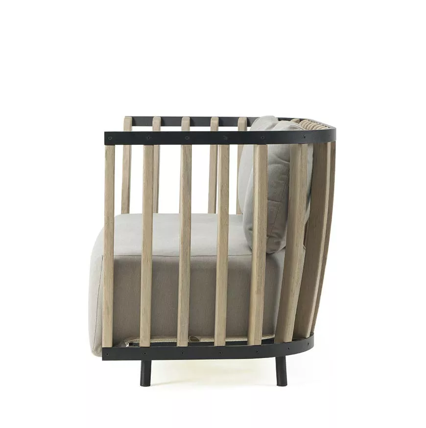 Ethimo Swing Loungesofa ZweisitzerDie "Swing"-Kollektion von Ethimo vereint elegantes Design mit höchstem Komfort und Nachhaltigkeit. Aus Teakholz gefertigt, bieten die Möbel eine warme, organische Ästhetik und moderne Linien. Die Kollektion umfasst Sessel, Sofas, Tische und Sonnenliegen, die durch wetterfeste Polster maximalen Komfort gewährleisten. Mit einem Fokus auf Nachhaltigkeit stammen die verwendeten Hölzer aus zertifizierten Quellen, und die umweltfreundlichen Fertigungsprozesse minimieren die Umweltbelastung. Die "Swing"-Kollektion bringt Stil und Funktionalität in jeden Außenbereich und ist ideal für anspruchsvolle, umweltbewusste Konsumenten. Gestell Teakholz Natur oder gebeiztem TeakholzAluminiumrahmen Sepia Black oder Warm White die Herstellung dieser hochwertigen Möbel erfolgt in erstklassiger Qualität UV-, witterungs- und farbbeständig leicht zu reinigenMaße (B x T x H):166 x 85 x 77 cmSitzhöhe: 41 cmGewicht: 43 kg