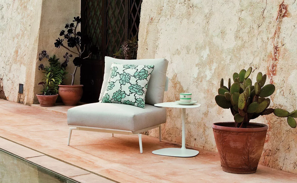 Durch den Einsatz von Aluminium in Kombination mit Sunbrella® Stoff ist die gesamte Aikana Kollektion sehr witterungsbeständig.