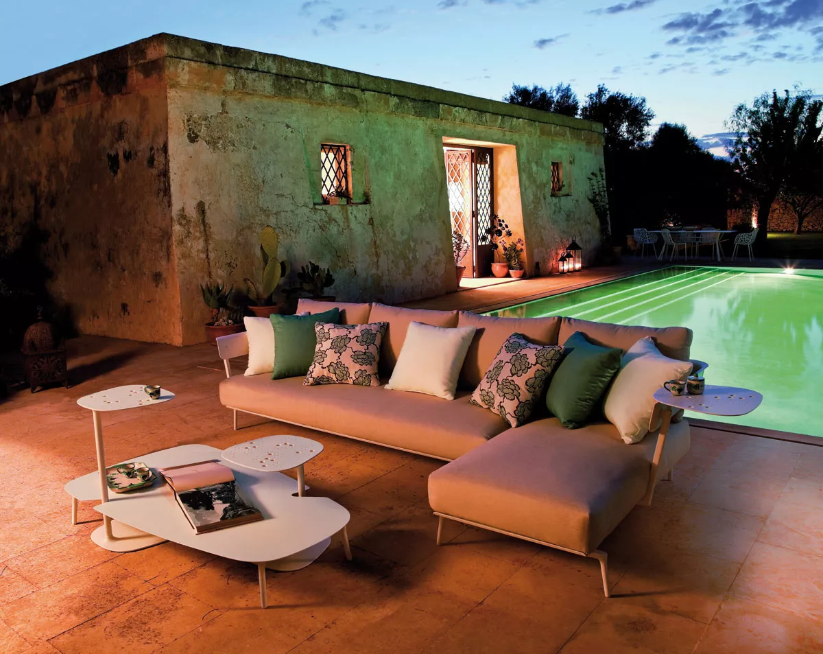 Aikana ist eine Gruppe von modulierbaren Elementen - inspiriert durch die Atmosphäre der 1950er Jahre - erstellt und konzipiert für den Innen- und Außenbereich, so dass Wohn-und Außenbereiche mit Harmonie und Stil eingerichtet werden können.