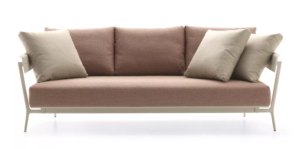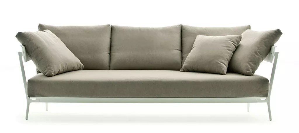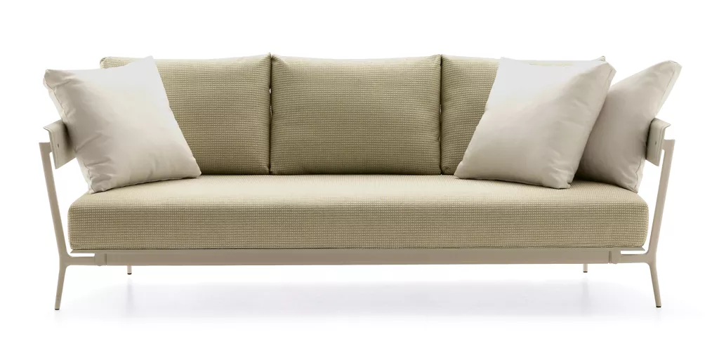 Fast Aikana 3-Sitzer-Sofa | ohne ArmlehnenAikana ist eine Gruppe von modulierbaren Elementen - inspiriert durch die Atmosphäre der 1950er Jahre - erstellt und konzipiert für den Innen- und Außenbereich, so dass Wohn-und Außenbereiche mit Harmonie und Stil eingerichtet werden können. Oberfläche Durch den Einsatz von Aluminium in Kombination mit Sunbrella® Stoff ist die gesamte Aikana Kollektion sehr witterungsbeständig. Stoffe Aikana Polster- und Kissenbezüge werden mit dem wasserabweichenden Sunbrella® Stoff hergestellt, der speziell für den Außeneinsatz ausgelegt ist. Maße (B × T × H): 196 × 89 × 64 cmSitzhöhe: 37 cmGewicht: 48 kg