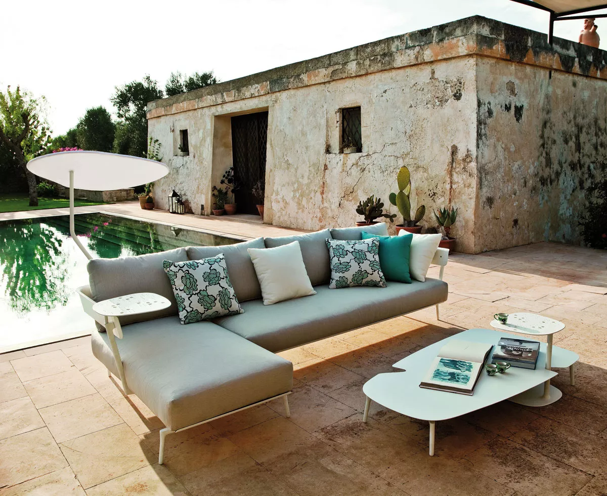 Aikana ist eine Gruppe von modulierbaren Elementen - inspiriert durch die Atmosphäre der 1950er Jahre - erstellt und konzipiert für den Innen- und Außenbereich, so dass Wohn-und Außenbereiche mit Harmonie und Stil eingerichtet werden können.