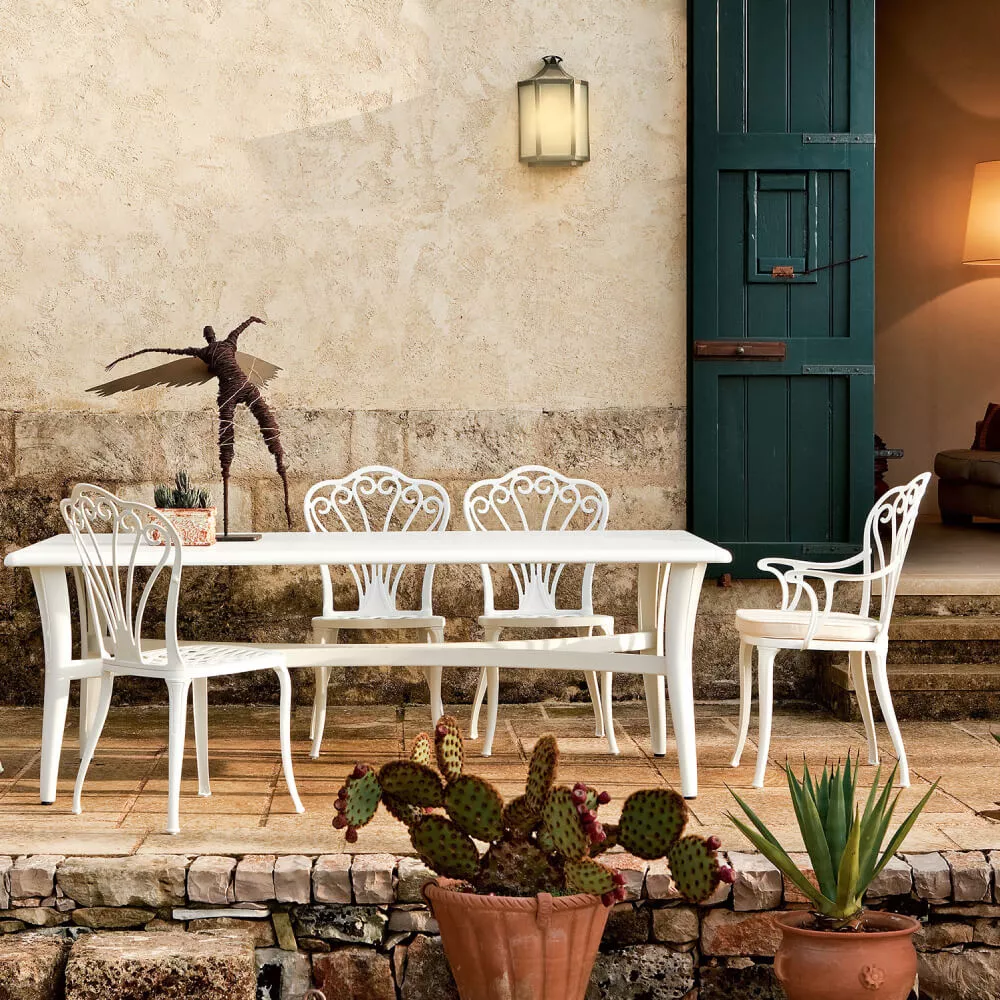 Durch den Einsatz von pulverbeschichtetem Aluminium ist die gesamte Armonia Kollektion sehr witterungsbeständig.