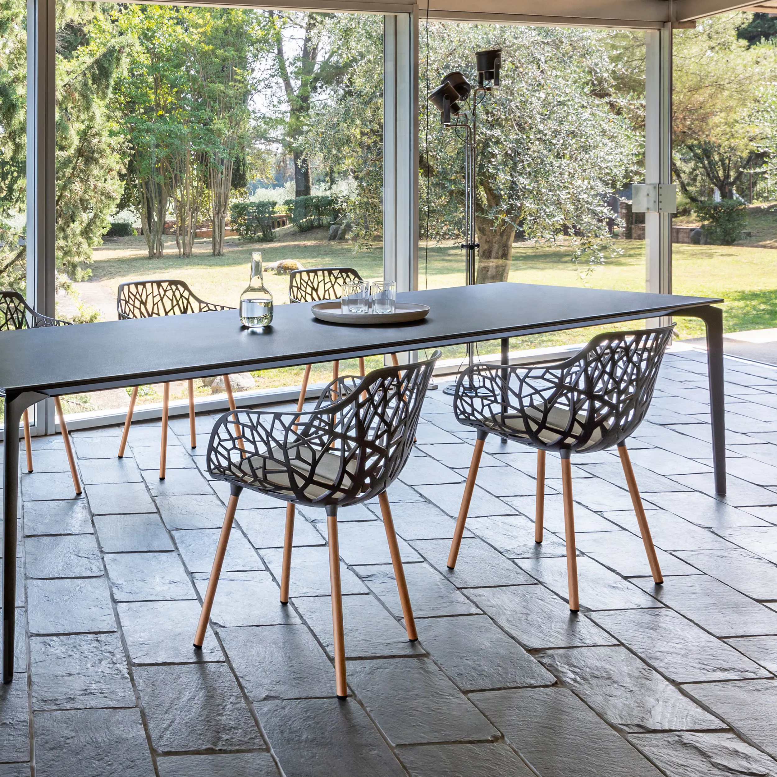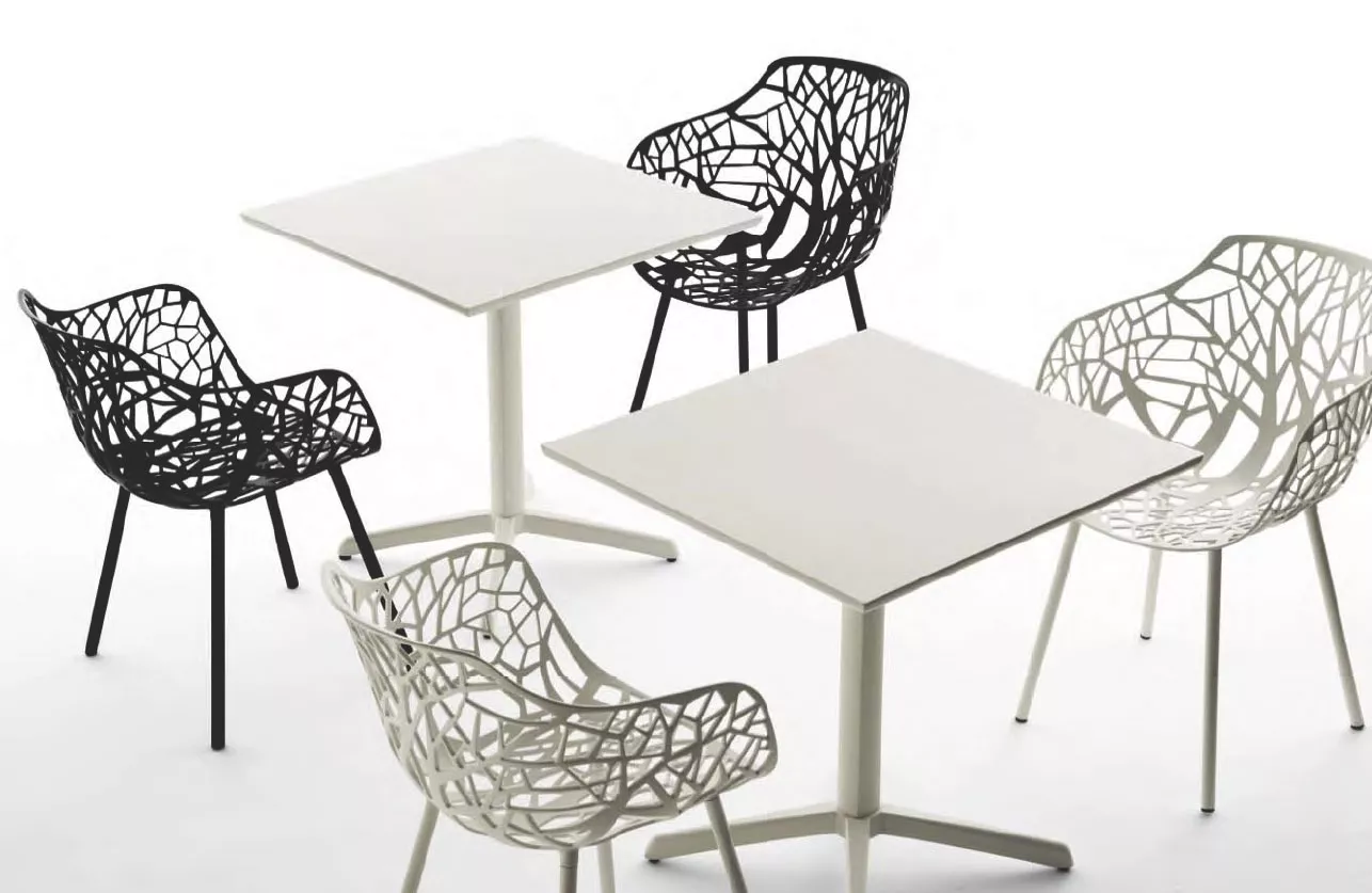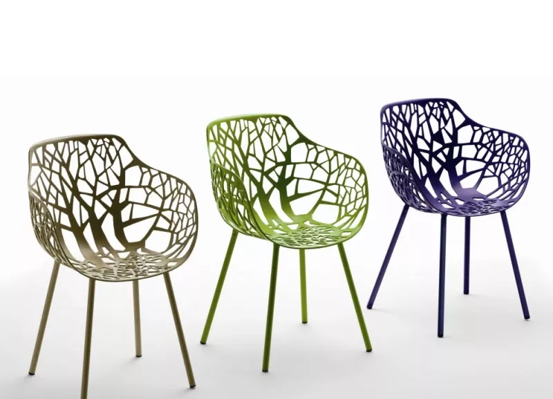 Forest ist eine auffallend elegante Gartenmöbel Kollektion mit einem unverwechselbaren Design, dass die Inspiration aus den Formen der Natur schöpft, eine Sammlung von Stühlen, Sesseln und Hocker die für Innen- und Außeneinsatz sehr gut geeignet sind. Der Werkstoff Aluminium ist für Outdoor Möbel eines der bewährtesten und geeignetsten Materialien überhaupt. Sein geringes Gewicht, die Haltbarkeit, hervorragende statische Eigenschaften und nahezu unbegrenzte Möglichkeiten in der Be- und Verarbeitung ermöglichen eine Vielfalt gestalterischer Optionen. Dank sehr gutem Design und unserem Herstellerpartner FAST verfügen wir über Kollektionen, die höchsten Ansprüchen in Ästhetik und Verarbeitung genügen und gleichzeitig dem Zeitgeist in all seinen Facetten entsprechen.