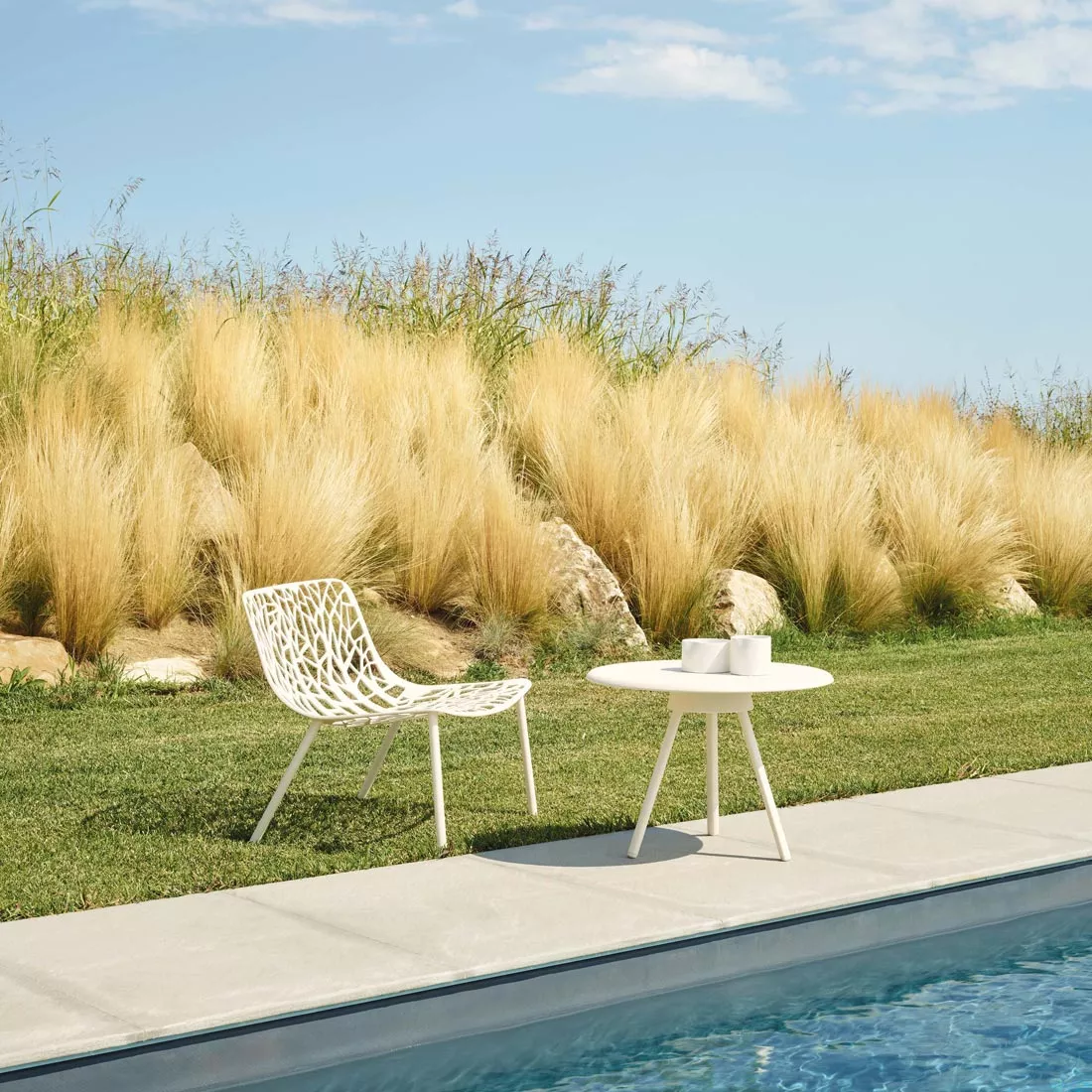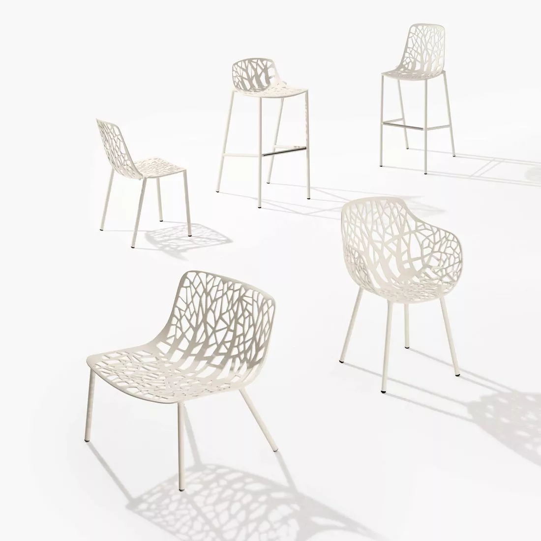 Forest ist eine auffallend elegante Gartenmöbel Kollektion mit einem unverwechselbaren Design, dass die Inspiration aus den Formen der Natur schöpft, eine Sammlung von Stühlen, Sesseln und Hocker die für Innen- und Außeneinsatz sehr gut geeignet sind. Der Werkstoff Aluminium ist für Outdoor Möbel eines der bewährtesten und geeignetsten Materialien überhaupt. Sein geringes Gewicht, die Haltbarkeit, hervorragende statische Eigenschaften und nahezu unbegrenzte Möglichkeiten in der Be- und Verarbeitung ermöglichen eine Vielfalt gestalterischer Optionen. Dank sehr gutem Design und unserem Herstellerpartner FAST verfügen wir über Kollektionen, die höchsten Ansprüchen in Ästhetik und Verarbeitung genügen und gleichzeitig dem Zeitgeist in all seinen Facetten entsprechen.