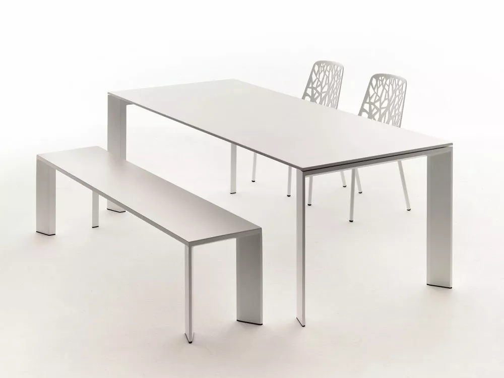 Fast Grande Arche Gartenbank mit einem Aluminiumgestell, pulverbeschichtet. Die geradlinig und elegant gestaltete Gartenmöbel Grande Arche enthält sowohl bis zu 270 cm breite Tische als auch verschiedene Gartenbänke, die in 14 verschiedenen Farben perfekt kombinierbar sind. Einfache klare Formen werden bei den Esstischen mit modern und stilvoll wirkenden Farben verbunden. Die Grande Arche Kollektion ist eine perfekte Kombination von Leichtigkeit, Vielseitigkeit, Eleganz und Einfachheit.