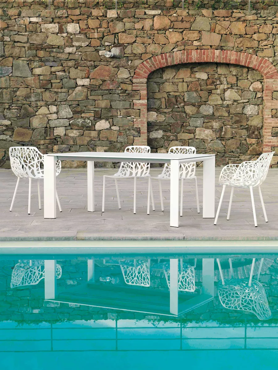 Fast Grande Arche ist eine auffallend elegante Gartenmöbel Kollektion mit einem unverwechselbaren Design, eine Auswahl von Gartentischen, die für Innen- und Außeneinsatz perfekt geeignet sind. Der Werkstoff Aluminium ist für Outdoor Möbel eines der geeignetsten Materialien überhaupt. Sein geringes Gewicht, die Haltbarkeit, hervorragende statische Eigenschaften und nahezu unbegrenzte Möglichkeiten in der Be- und Verarbeitung ermöglichen eine Vielfalt gestalterischer Optionen. Dank sehr gutem Design genügten Grande Arche Gartentische den höchsten Ansprüchen in Ästhetik und Verarbeitung und gleichzeitig entsprechen dem Zeitgeist in all seinen Facetten.