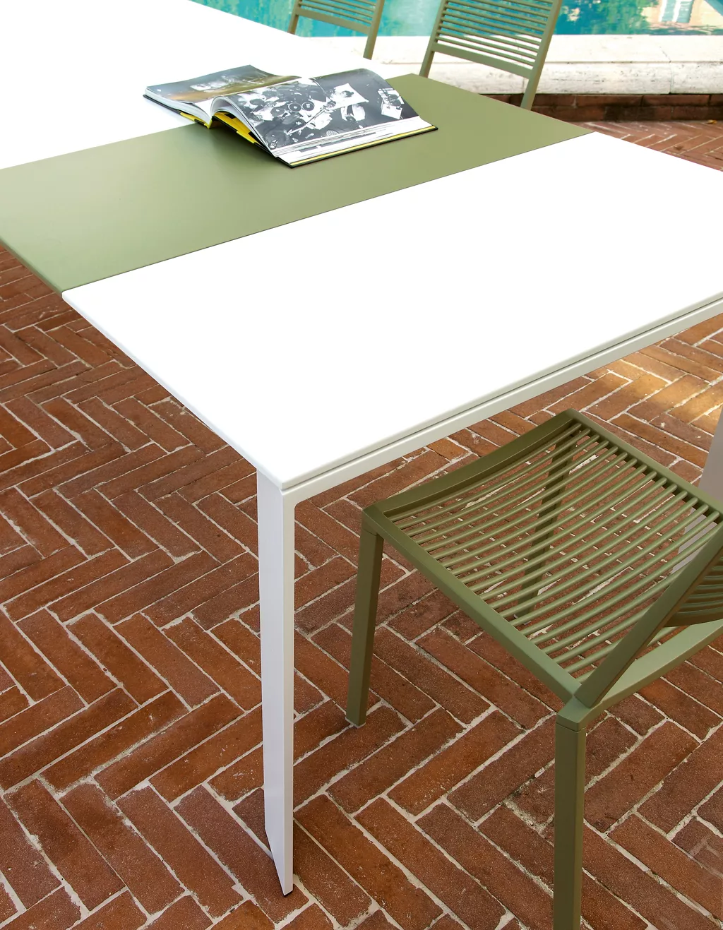 Fast Grande Arche Tisch mit einem Aluminiumgestell, pulverbeschichtet. Die geradlinig und elegant gestaltete Gartenmöbel Grande Arche enthält sowohl bis zu 270 cm breite Tische als auch verschiedene Gartenbänke, die in 14 verschiedenen Farben perfekt kombinierbar sind. Einfache klare Formen werden bei den Esstischen mit modern und stilvoll wirkenden Farben verbunden. Die Grande Arche Kollektion ist eine perfekte Kombination von Leichtigkeit, Vielseitigkeit, Eleganz und Einfachheit.