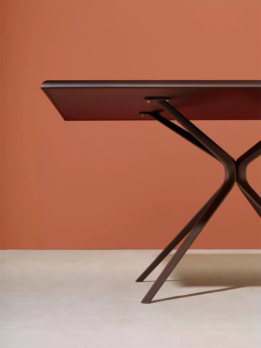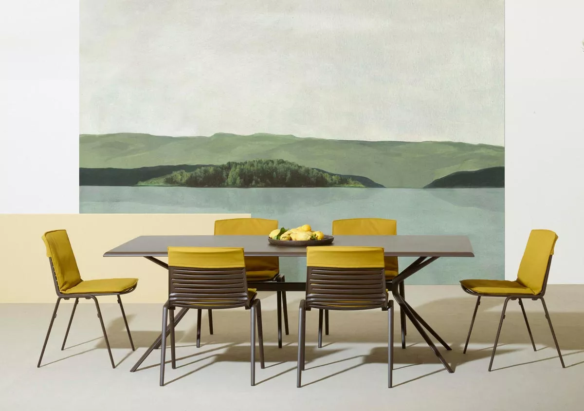 Fast Grande Arche Tisch mit einem Aluminiumgestell, pulverbeschichtet. Die geradlinig und elegant gestaltete Gartenmöbel Grande Arche enthält sowohl bis zu 270 cm breite Tische als auch verschiedene Gartenbänke, die in 14 verschiedenen Farben perfekt kombinierbar sind. Einfache klare Formen werden bei den Esstischen mit modern und stilvoll wirkenden Farben verbunden. Die Grande Arche Kollektion ist eine perfekte Kombination von Leichtigkeit, Vielseitigkeit, Eleganz und Einfachheit.