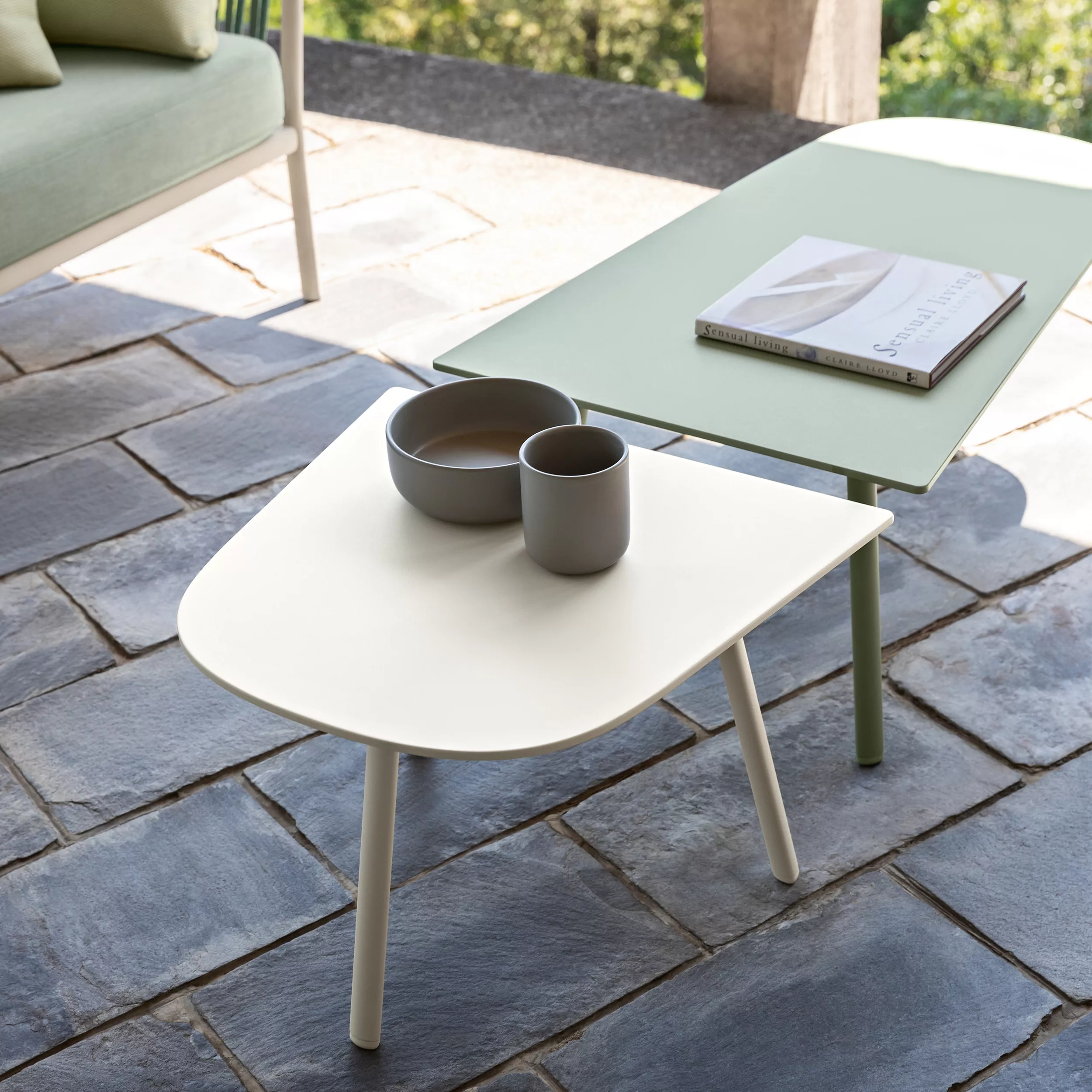 Fast Mosaiko Beistelltisch H45 cm | versch. GrößenDie Beistelltische der Kollektion Mosaiko von Fast lassen sich in vielen Varianten miteinander kombinieren. Die Tische können an ihrer geraden Kante zusammengeschoben werden, so entsteht je nach Kombination und Farbe ein ganz individuelles Bild. Zudem lassen sich die Tische durch ihre zwei unterschiedlichen Höhen nicht nur aneinander, sondern auch untereinander stellen. Der Kreativität in der Zusammenstellung sind mit den verschiedenen Formen, Höhen und Farben keine Grenzen gesetzt. Oberfläche Durch den Einsatz von Aluminium ist die gesamte Fast Mosaiko Kollektion sehr witterungsbeständig. Die Tische haben entweder eine lackierte Aluminium-Tischplatte, eine Tischplatte mit gesprenkeltem Aluminium oder mit Feinsteinzeug. Maße (B x T):Höhe: 45 cm50 x 56 cm90 x 56 cm120 x 56 cm